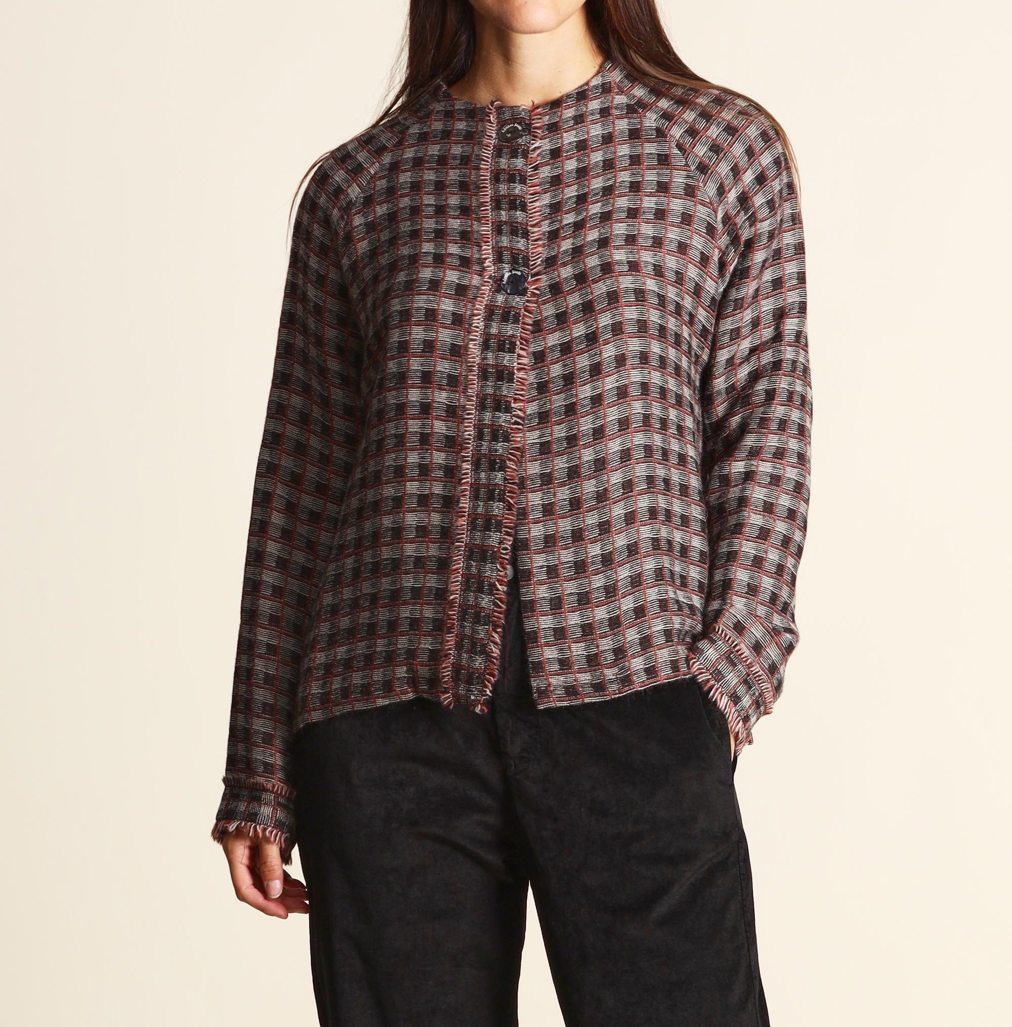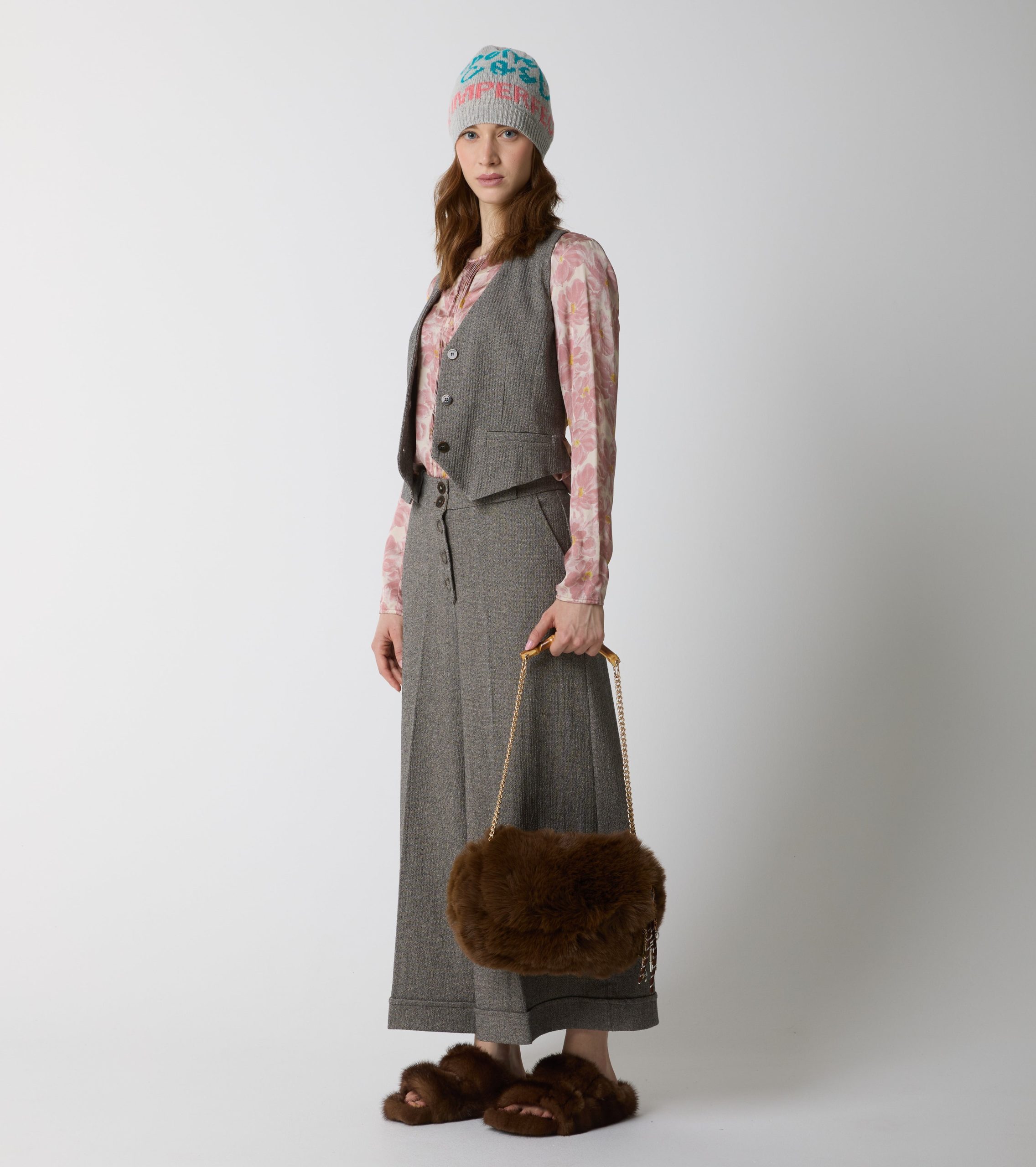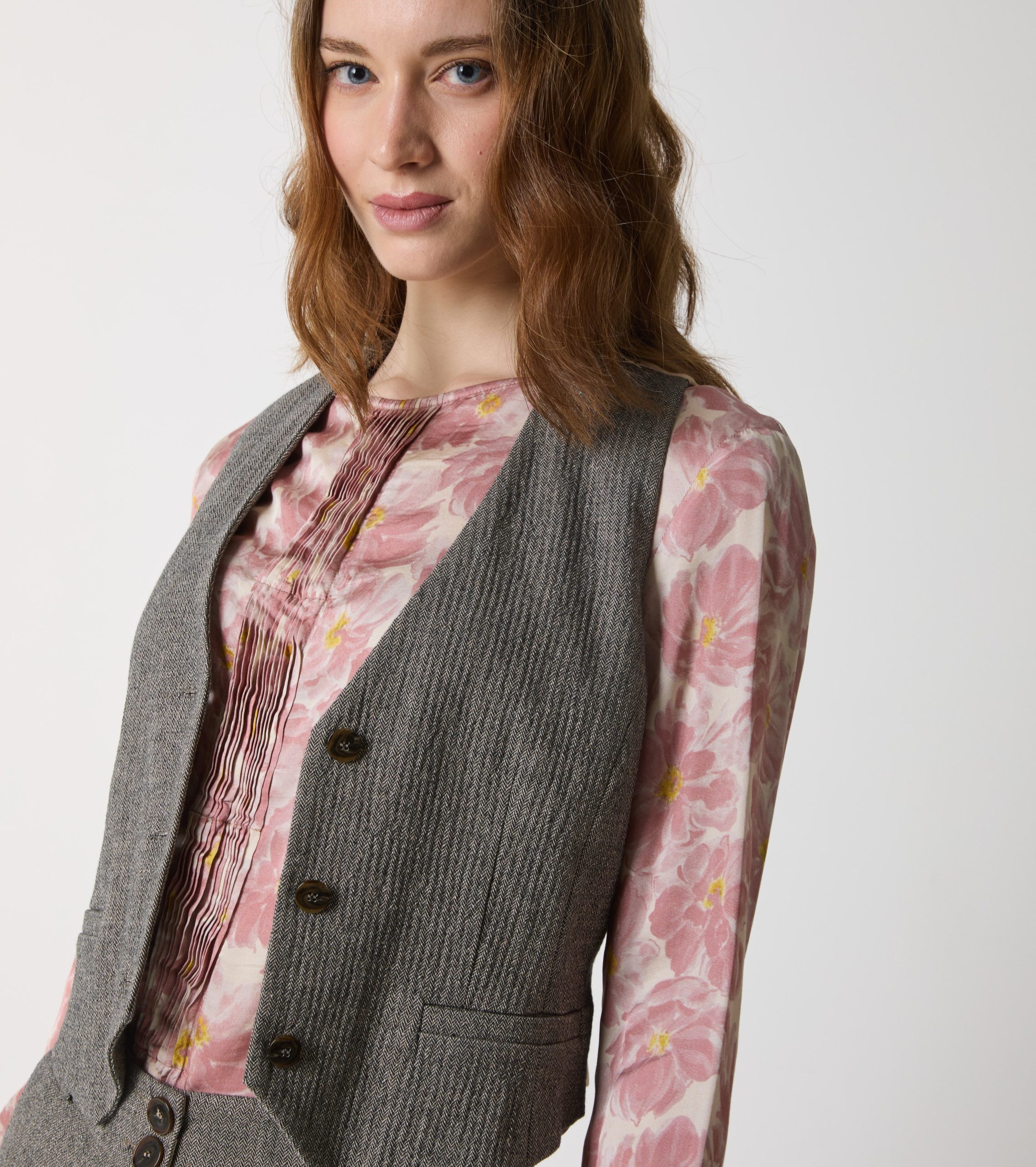 Scegli il gilet realizzato in tweed di misto cotone stretch dalla texture compatta e raffinata.