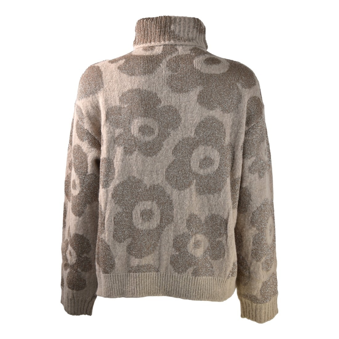 Scegli il la maglia realizzata in morbido filato di misto alpaca e lana, impreziosita da un motivo jacquard floreale con dettagli in lurex.