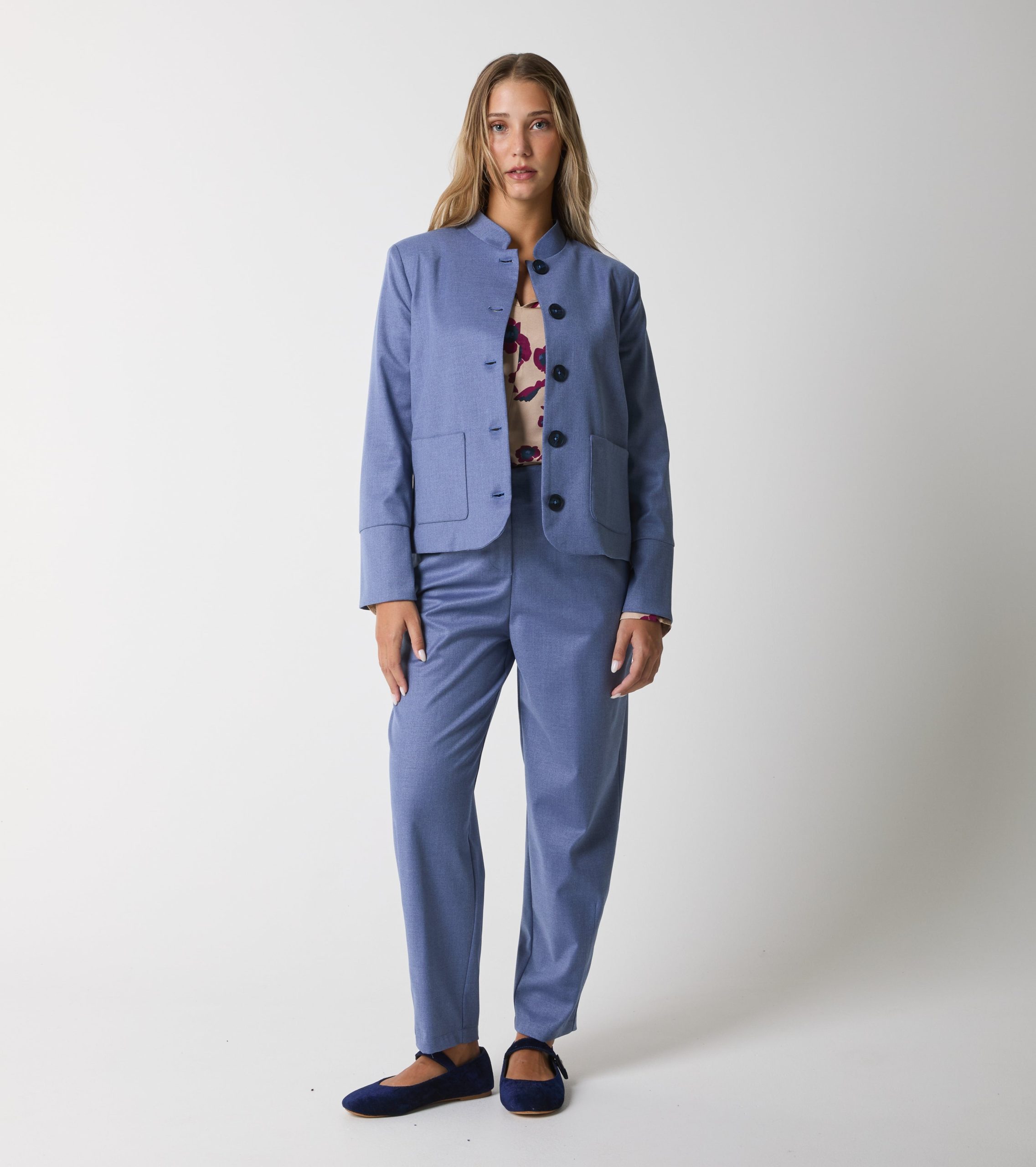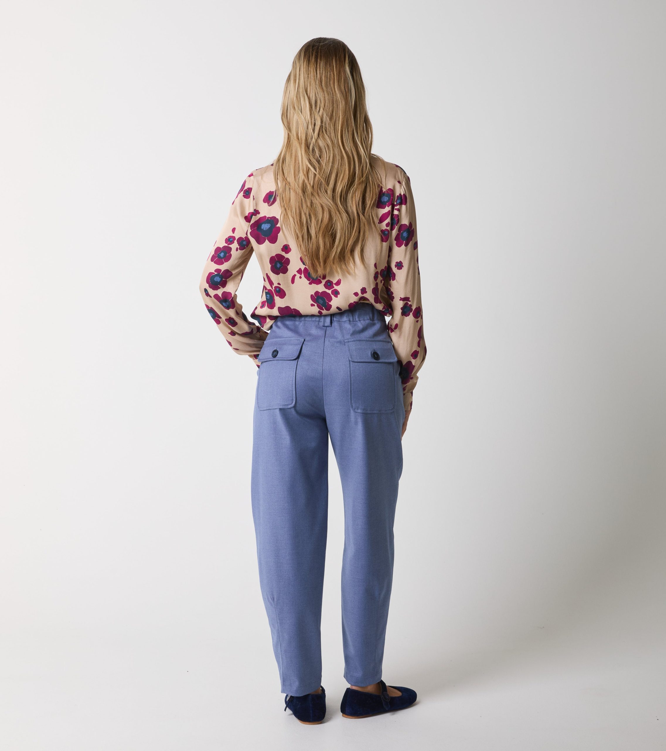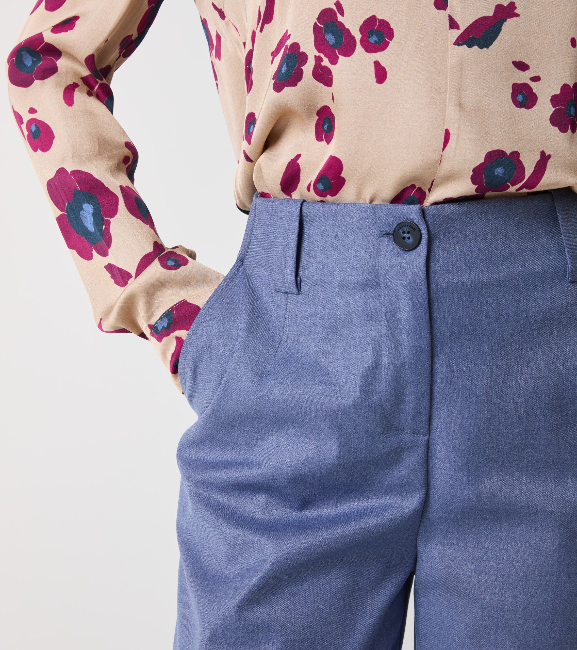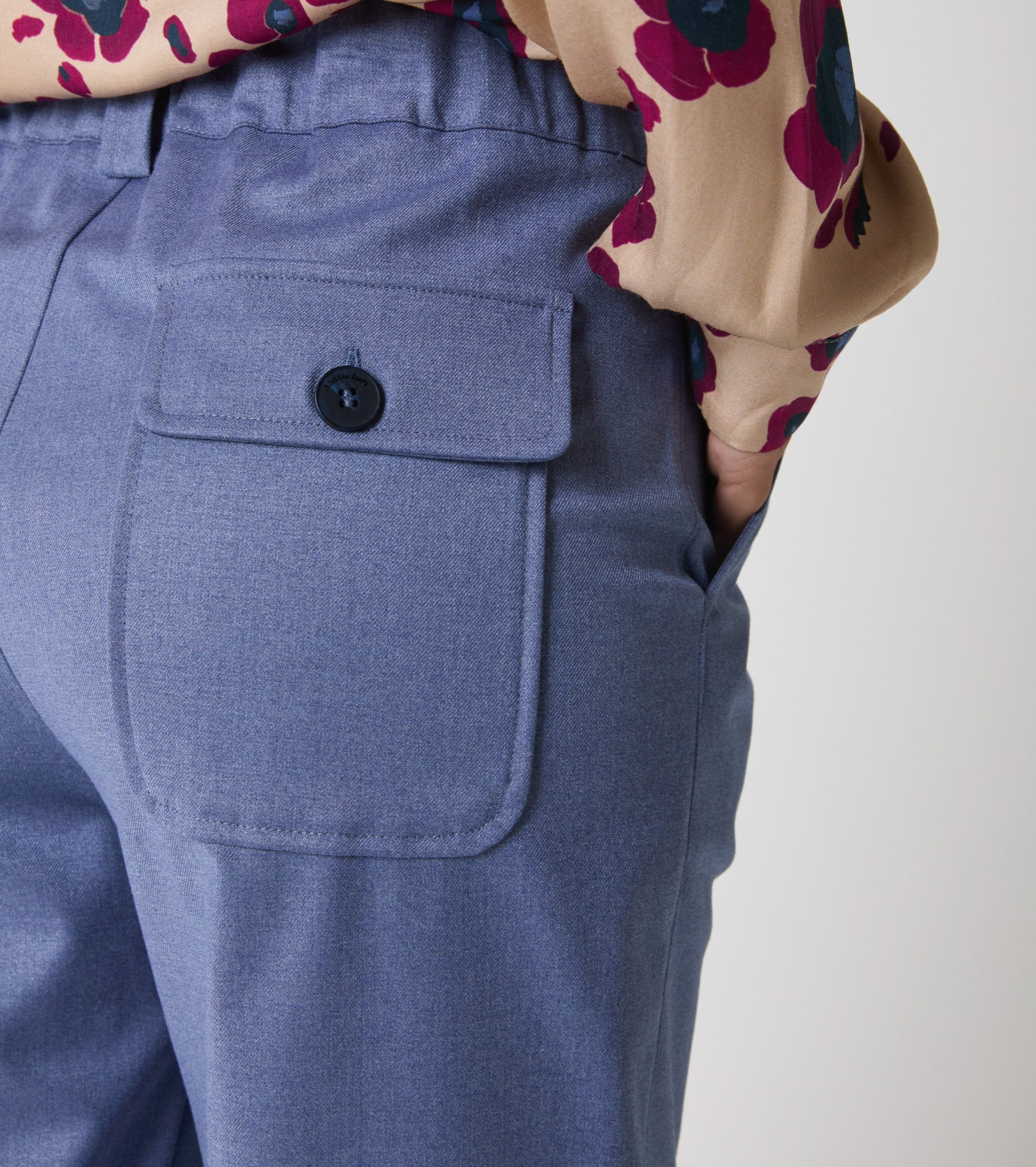Il modello dalla linea affusolata presenta vita regolare e tasche sui fianchi. Design sartoriale per un’eleganza moderna e senza tempo.
