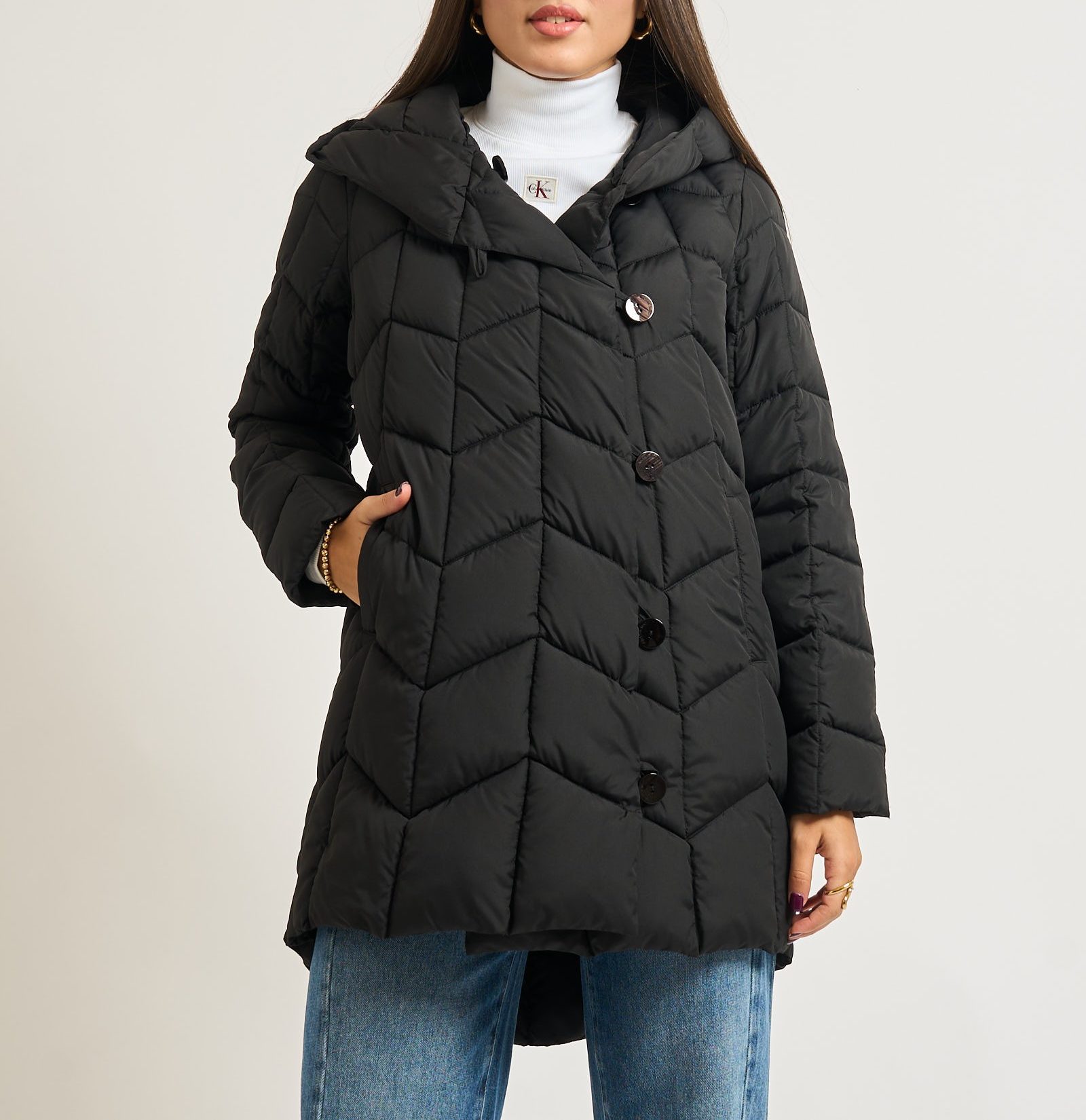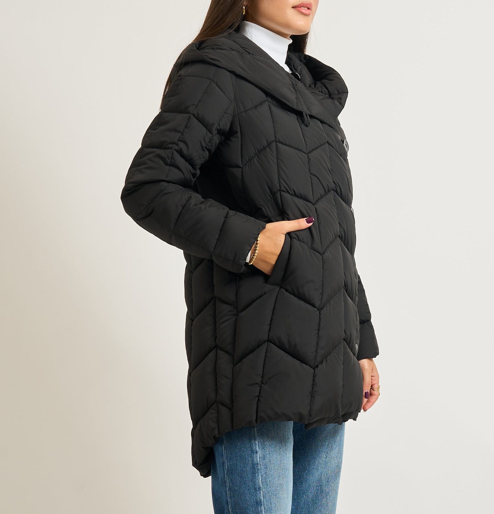 Piumino lungo Alessia Santi realizzato in nylon trapuntato dall’aspetto resistente e leggero.