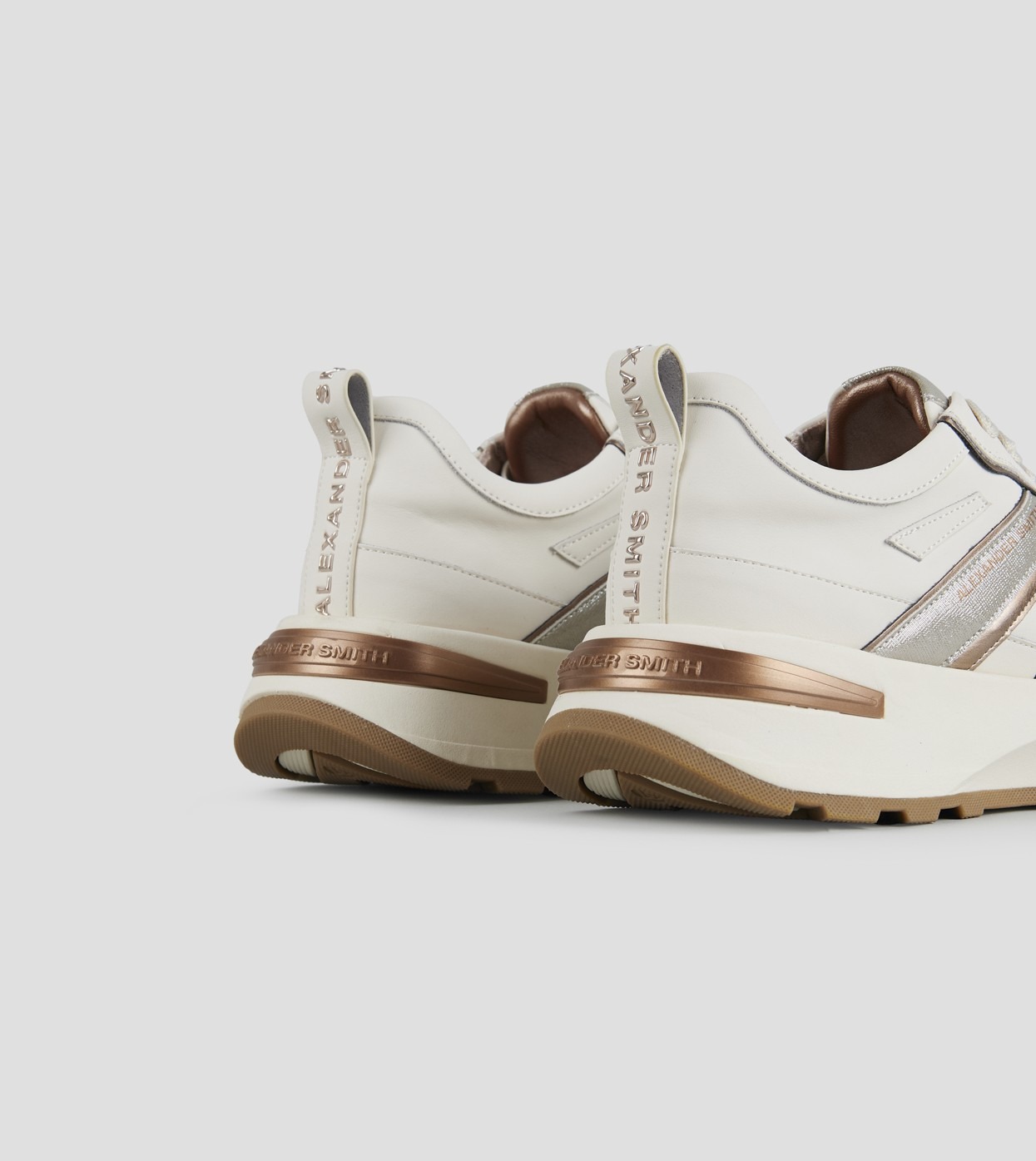 Il nuovo modello firmato Alexander Smith, che prende ispirazione da una delle città più iconiche del Regno Unito, è la nuova proposta running del brand: linea affusolata, suola importante e dettagli ricercati danno vita ad una sneakers versatile e distintiva, in questa variante in pelle bianca con logo laterale in glitter argento