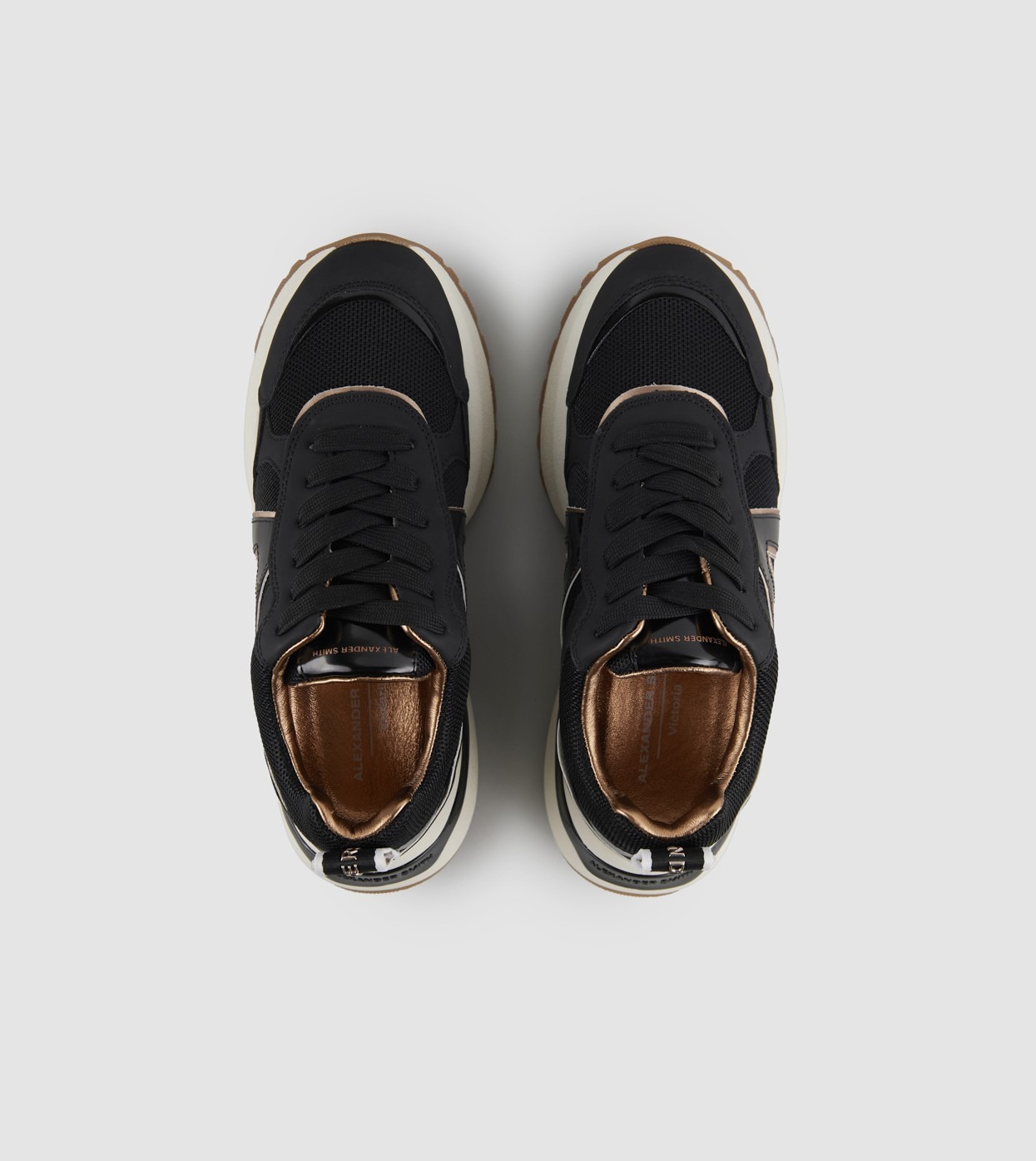 Il nuovo modello Victoria di Alexander Smith nasce per accompagnare ogni passo con grinta ed eleganza. Linee decise, dettagli metallici e una suola bold definiscono una sneaker dallo spirito contemporaneo, perfetta per chi vuole distinguersi. Victoria è l’equilibrio perfetto tra performance urbana e ricercatezza estetica, in questa variante in pelle nera e dettagli specchio.