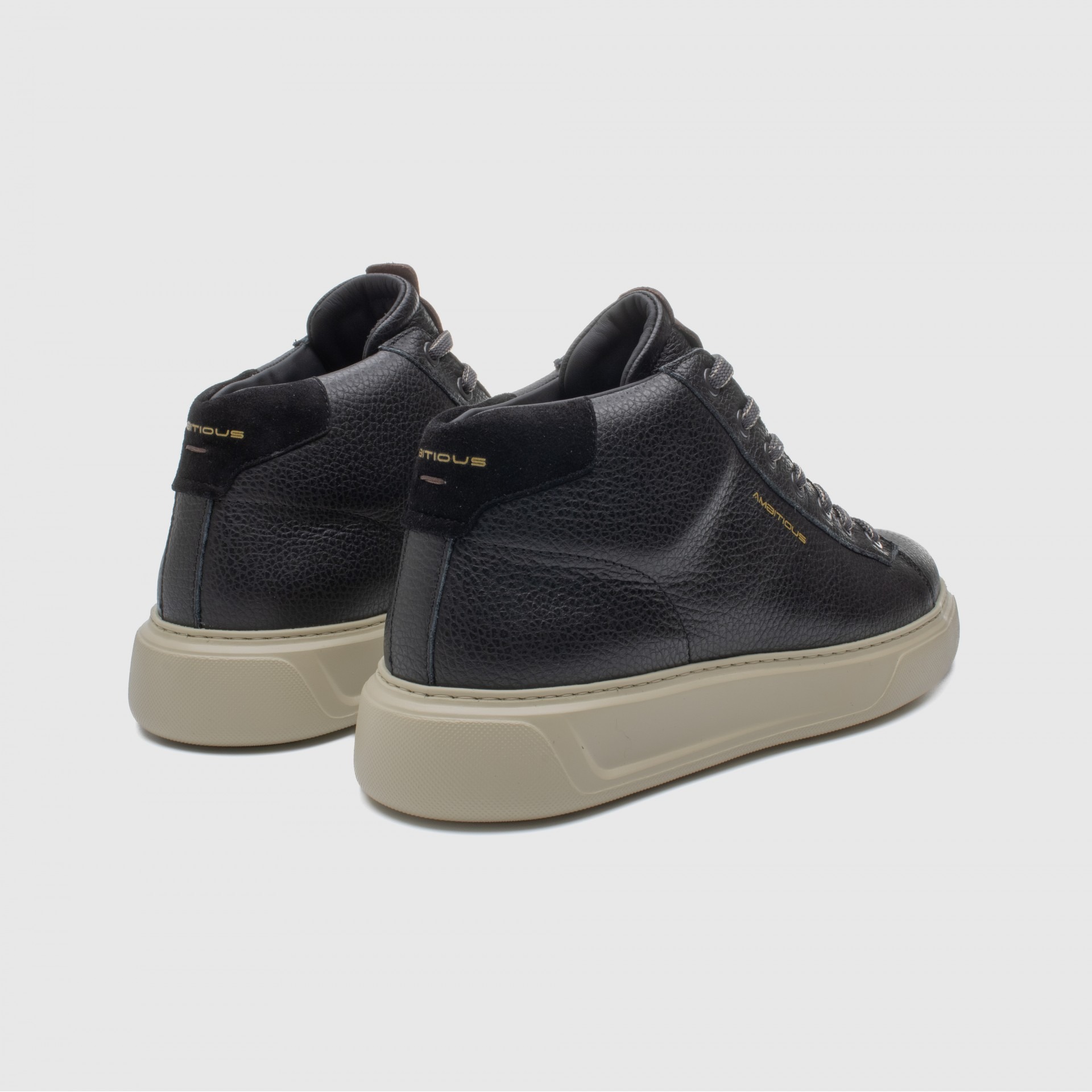 La versione alta del modello KIT conserva i dettagli minimalisti che lo caratterizzano. Realizzata interamente in pelle, presenta una suola in EVA semi-rialzata