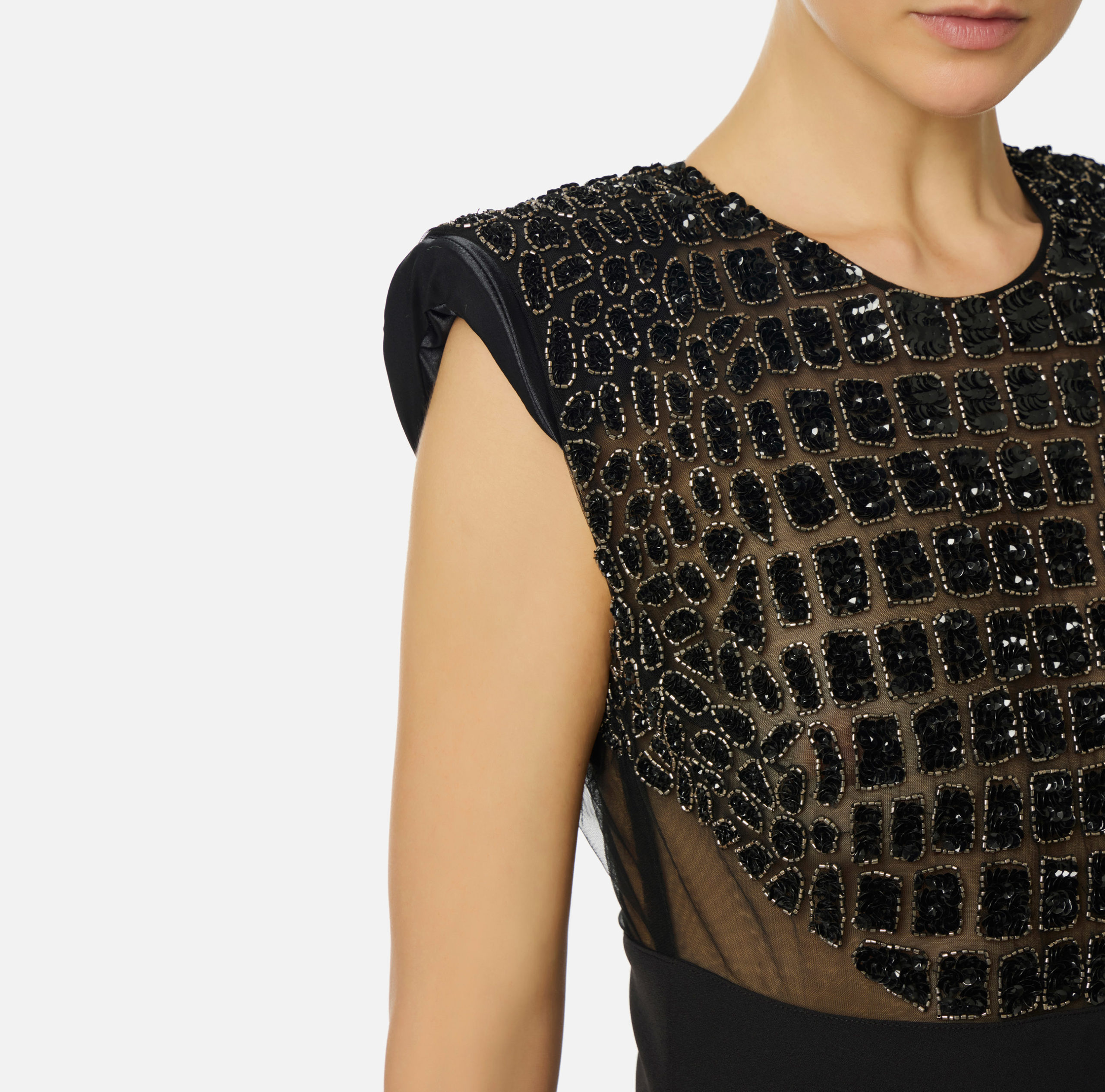ELISABETTA FRANCHI Abito in crepe leggero e tulle con ricami cocco AB83457E2 Nero