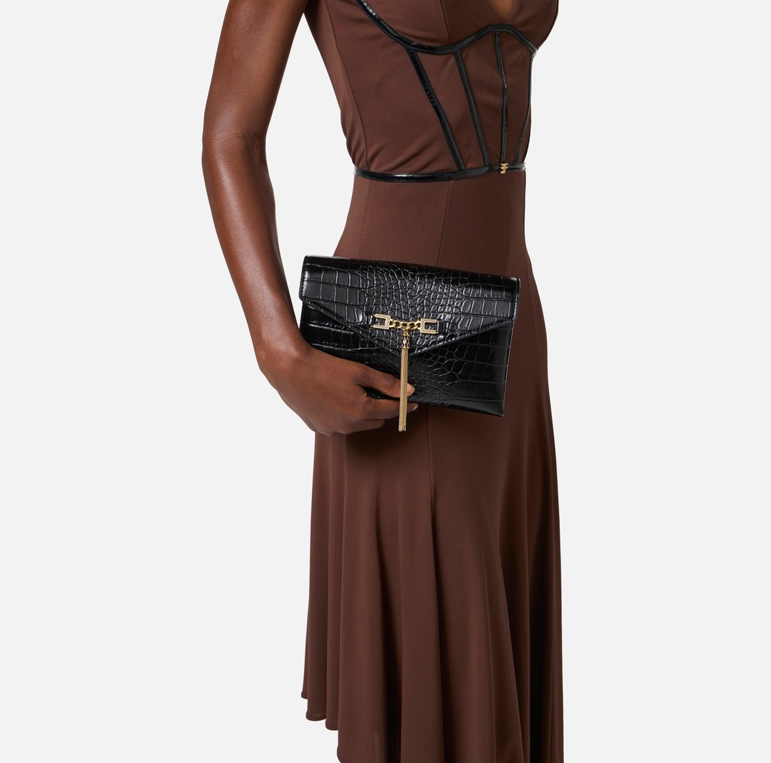 Tag: Borsa Tracolla con catena groumette, BS56A57E2, ELISABETTA FRANCHI, Nero