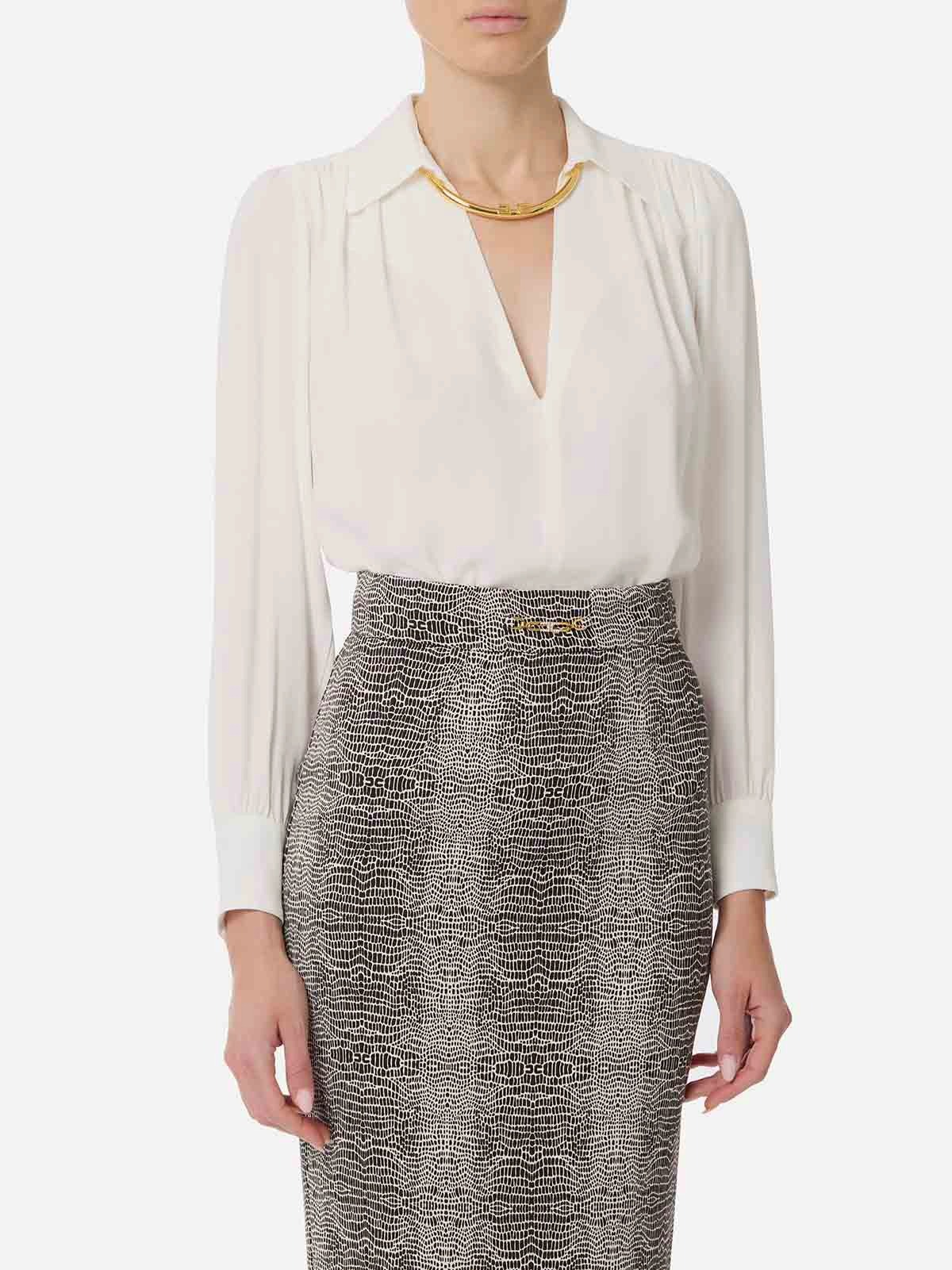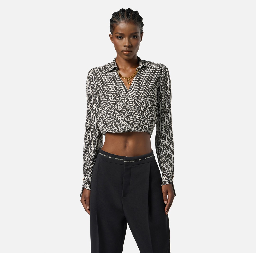 ELISABETTA FRANCHI Camicia in georgette con stampa geometrica CAS0256E2 Nero Milk