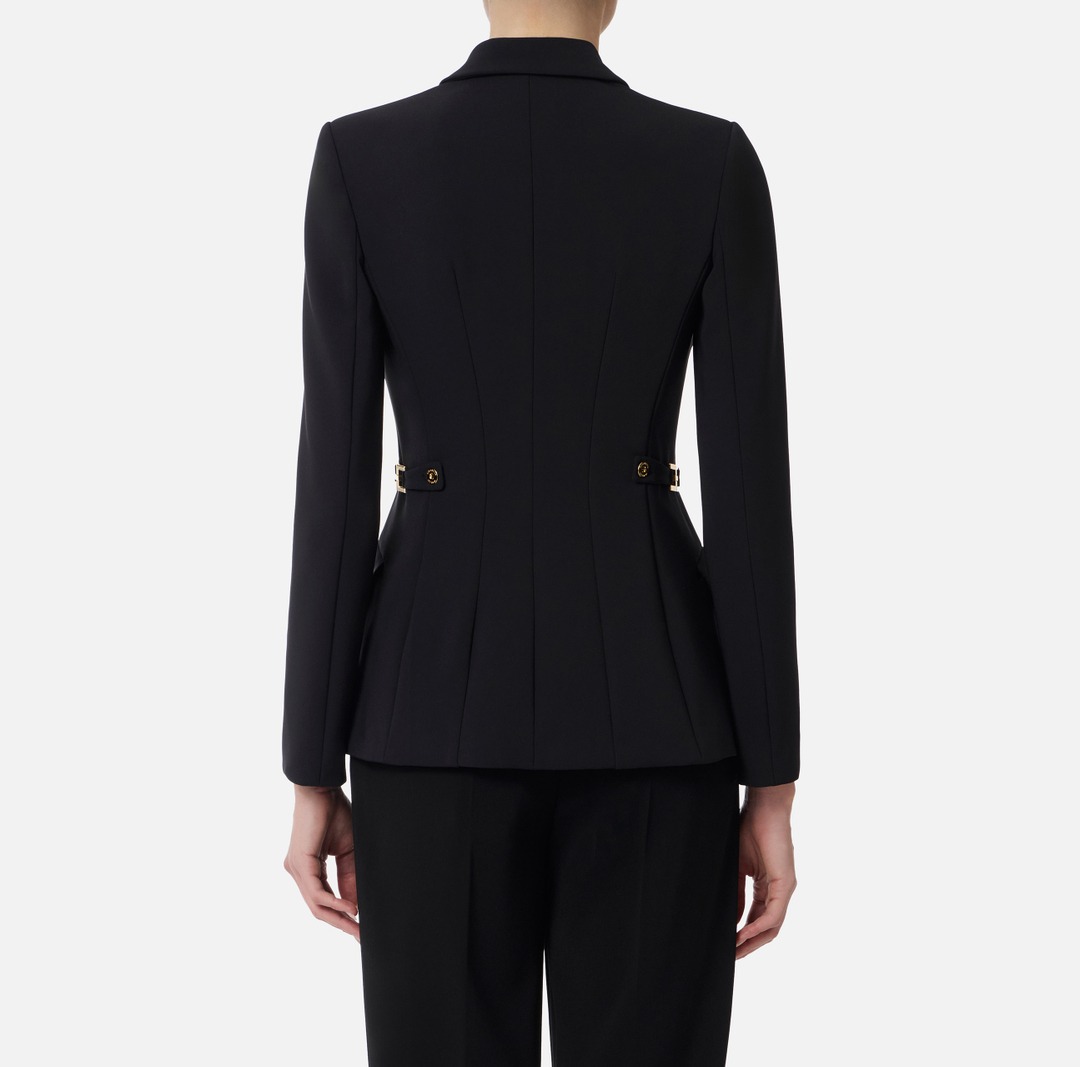 ELISABETTA FRANCHI Giacca in crepe leggero con dettagli gioiello GI17556E2 Nero