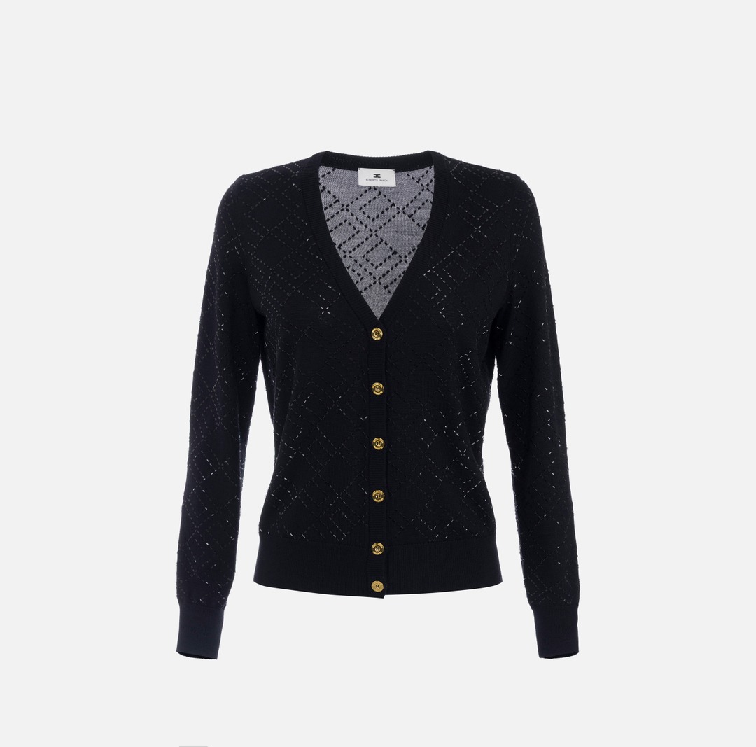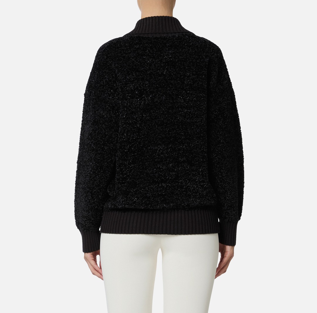 ELISABETTA FRANCHI Maglia Cardigan in ciniglia boucle con bottoni gioiello MK44S57E2 Nero