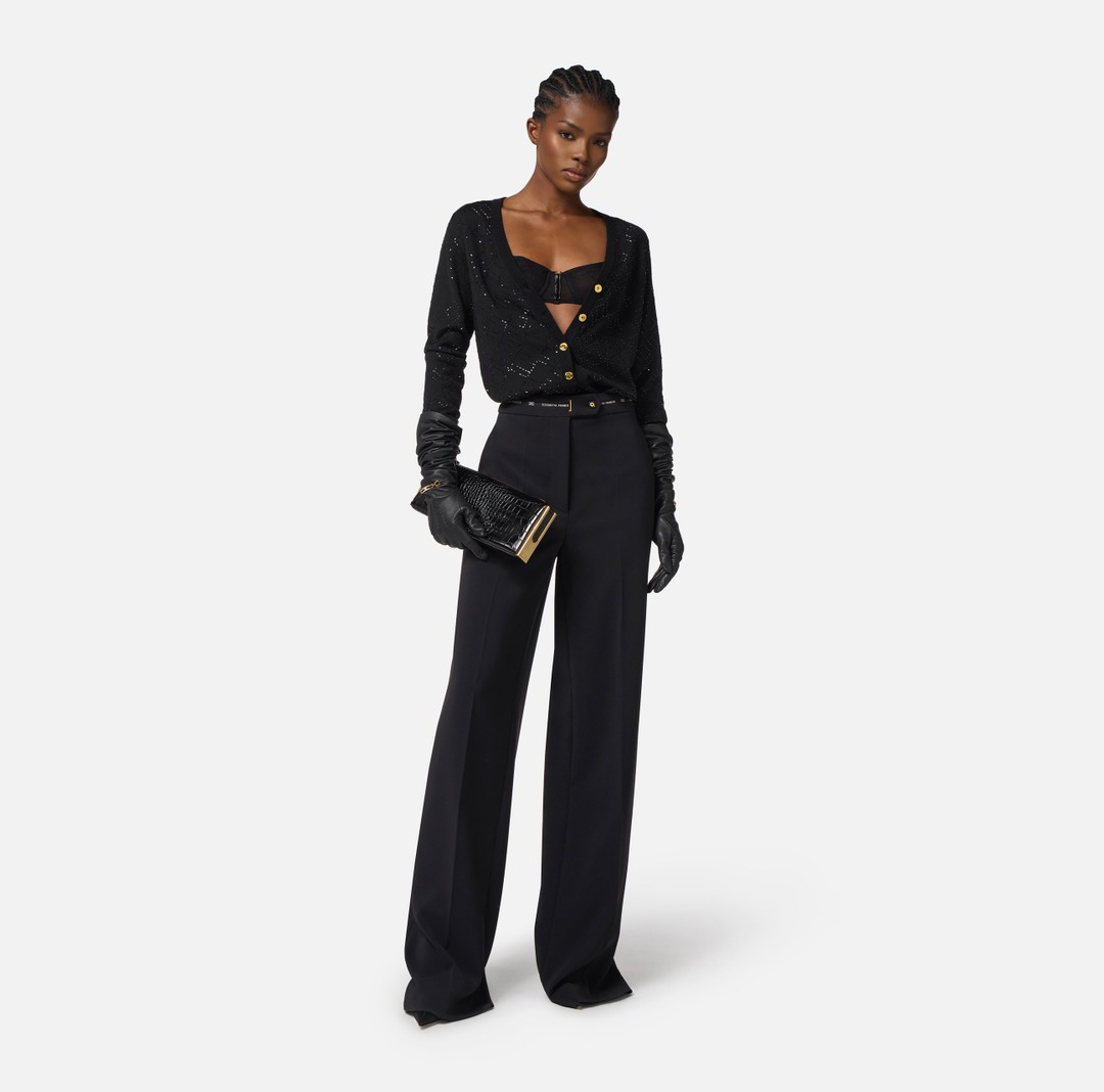 ELISABETTA FRANCHI Maglia Cardigan in lana con cristalli MK26B56E2 Nero