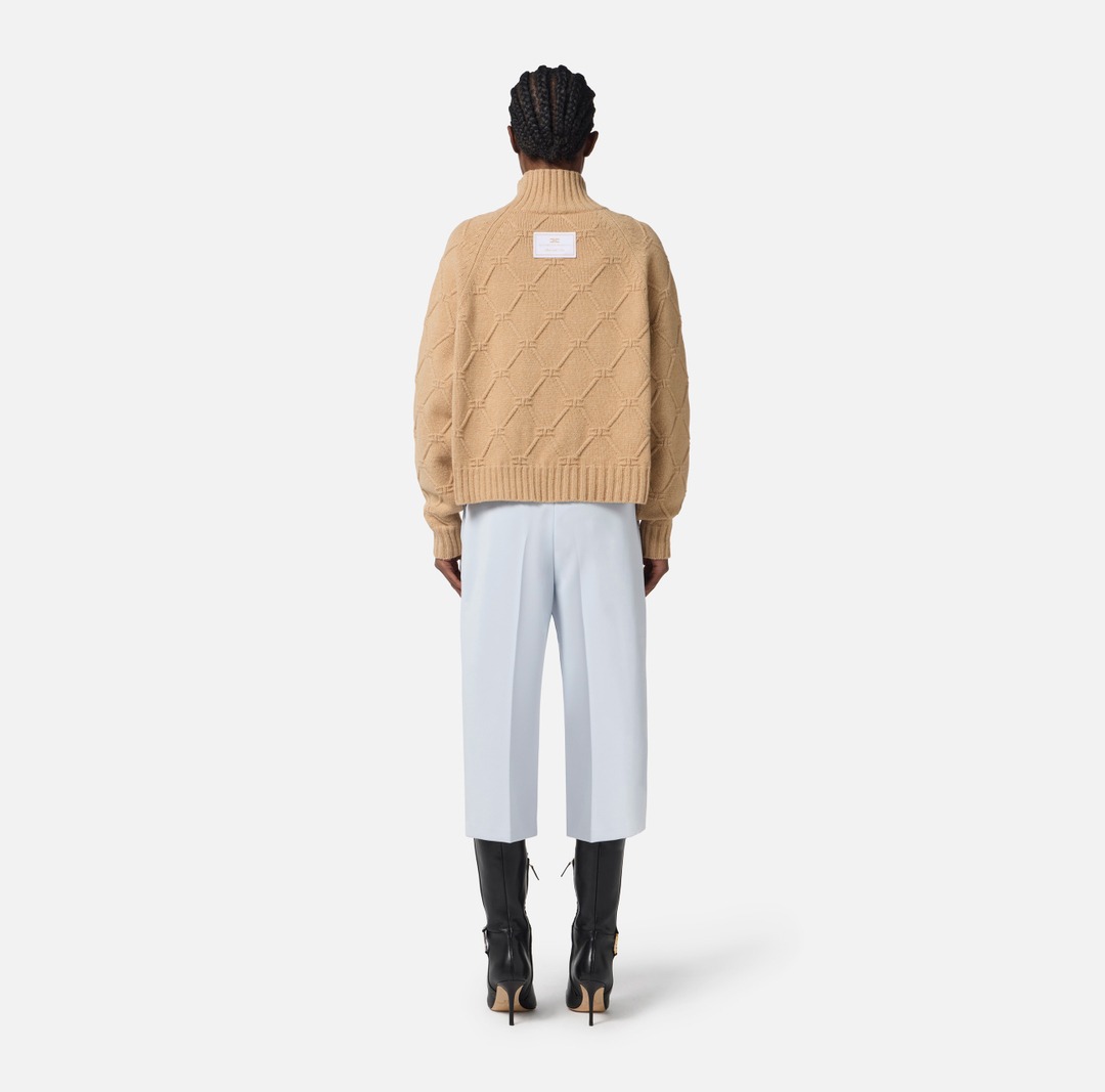 ELISABETTA FRANCHI Maglia Pullover con losanghe jacquard MK55T57E2 Honey