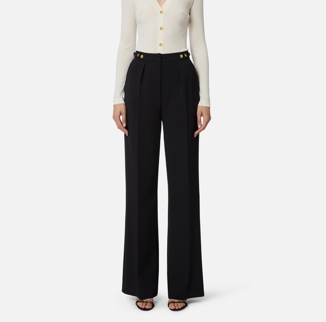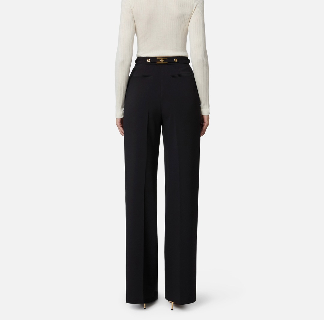 ELISABETTA FRANCHI Pantaloni in crepe con accessorio gioiello PA09956E2 Nero