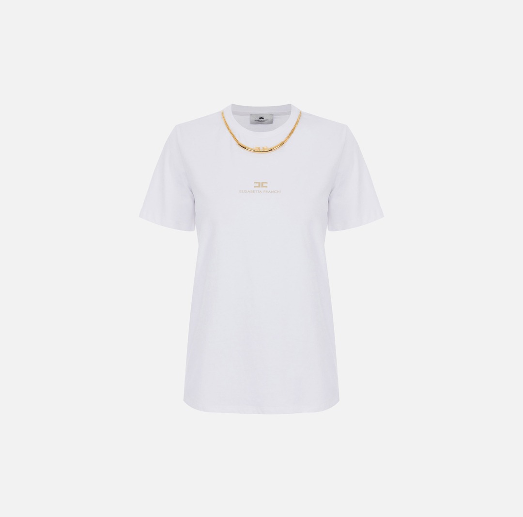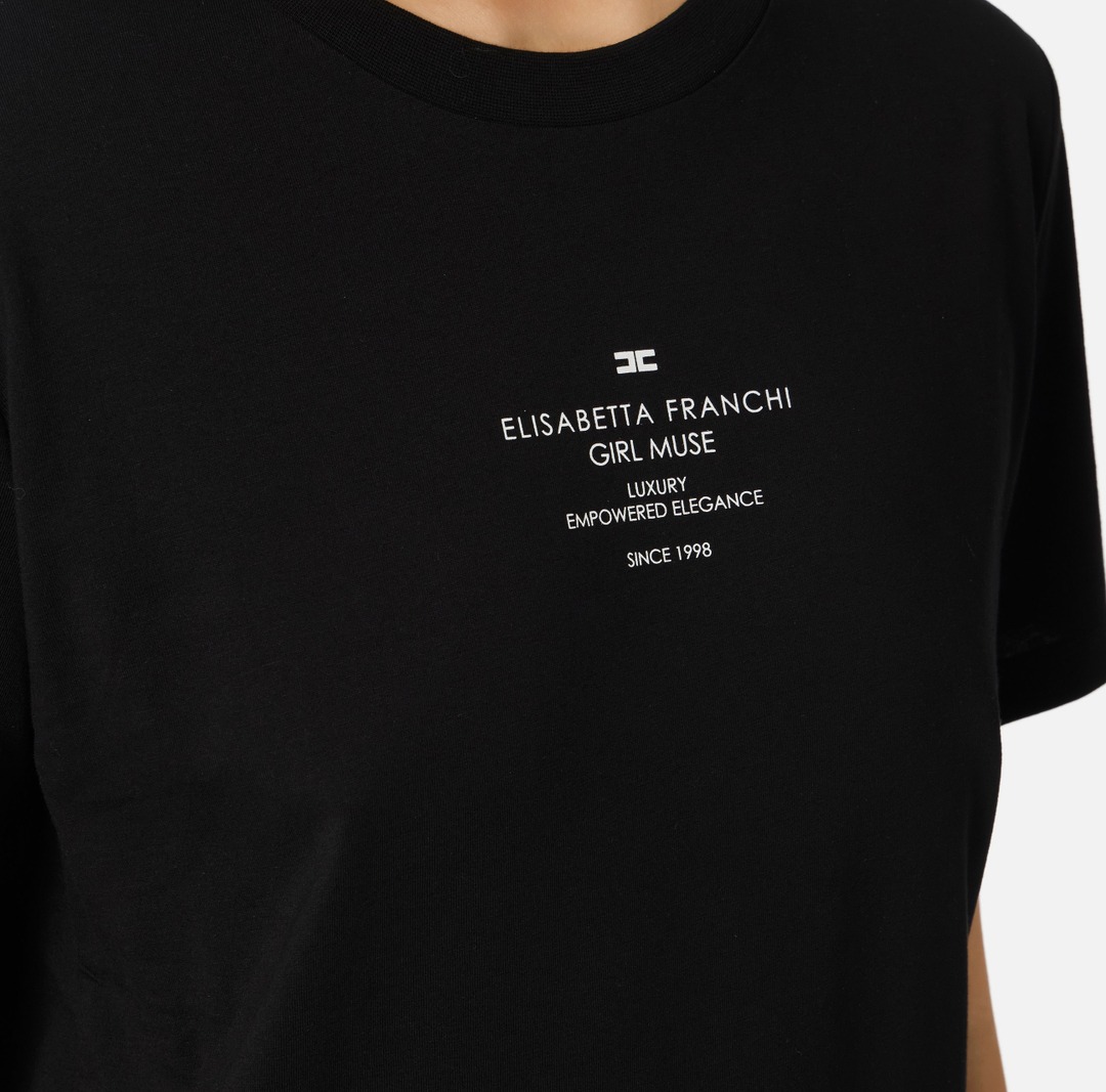 ELISABETTA FRANCHI T-shirt in jersey di cotone con stampa MA63D56E2 Nero