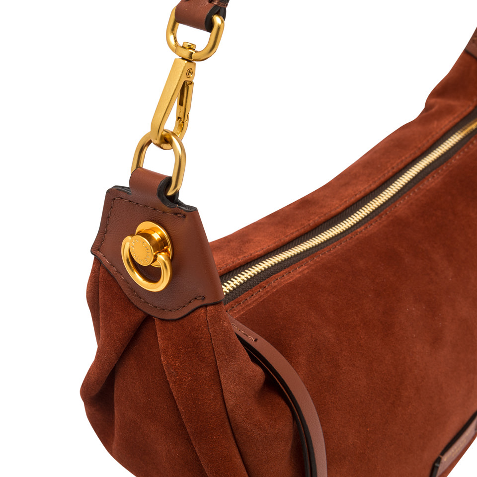 La nuova borsa Aisha è realizzata in pelle scamosciata, ideale per una donna dallo stile contemporaneo. Pensata per chi cerca praticità senza compromessi, è caratterizzata da una morbida shape a sacca e presenta una chiusura con zip. Dotata inoltre di un manico superiore, offre una doppia portabilità: shoulder & crossbody. Dimensioni: 29x18x12,5 cm.