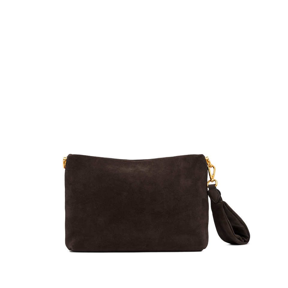 Brenda, bestseller by Gianni Chiarini Firenze, è una pochette in pelle scamosciata impreziosita da un maxi cinturino per poterla indossare al polso. Al suo interno troviamo una tasca piatta. Da indossare crossbody grazie alla tracolla in tessuto intrecciato regolabile e removibile. Dimensioni: 28x20x6 cm.