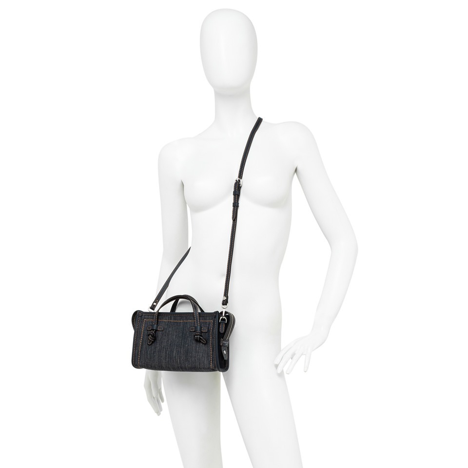 La Marcella Joy by Gianni Chiarini Firenze è una borsa elegante realizzata in cotone effetto denim, arricchita da sofisticati inserti in pelle suede. Puoi portarla a mano o utilizzare la sua sottile tracolla in pelle, rendendola l’accessorio ideale per un look chic e moderno. La pratica zip di chiusura garantisce una maggiore sicurezza. Dimensioni: 23×13,5×8,5 cm.
