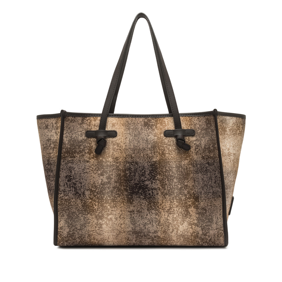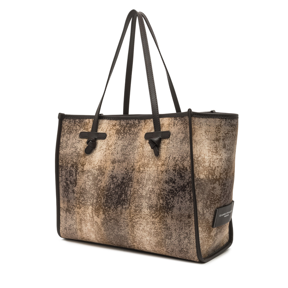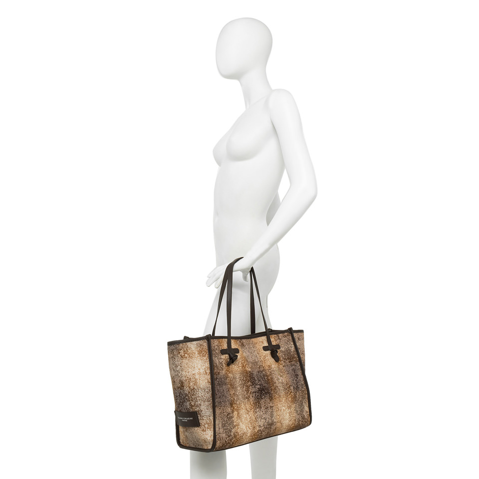 La shopping Marcella by Gianni Chiarini Firenze, dalla silhouette semplice e moderna, è realizzata in tessuto con motivi classici ed effetto vintage. Il design minimal è arricchito da profili in pelle che conferiscono alla borsa un tocco di eleganza. Dotata di manici in pelle e di una comoda chiusura tramite magnete, è ideale per la vita quotidiana. La pochette in pelle, dello stesso colore delle rifiniture, la rende un accessorio unico nel suo genere. Dimensioni: 38x31x16 cm.