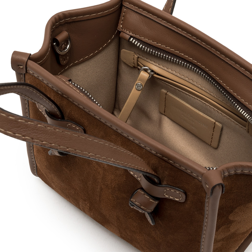 La Miss Marcella by Gianni Chiarini Firenze è un accessorio casual e al contempo elegante. Realizzata in pelle scamosciata dal tocco morbido e setoso ed è impreziosita da finiture in pelle liscia. Must-have di stagione, da portare a mano o crossbody con la sua fine tracolla in pelle in tono. Dimensioni: 19x15x10 cm.
