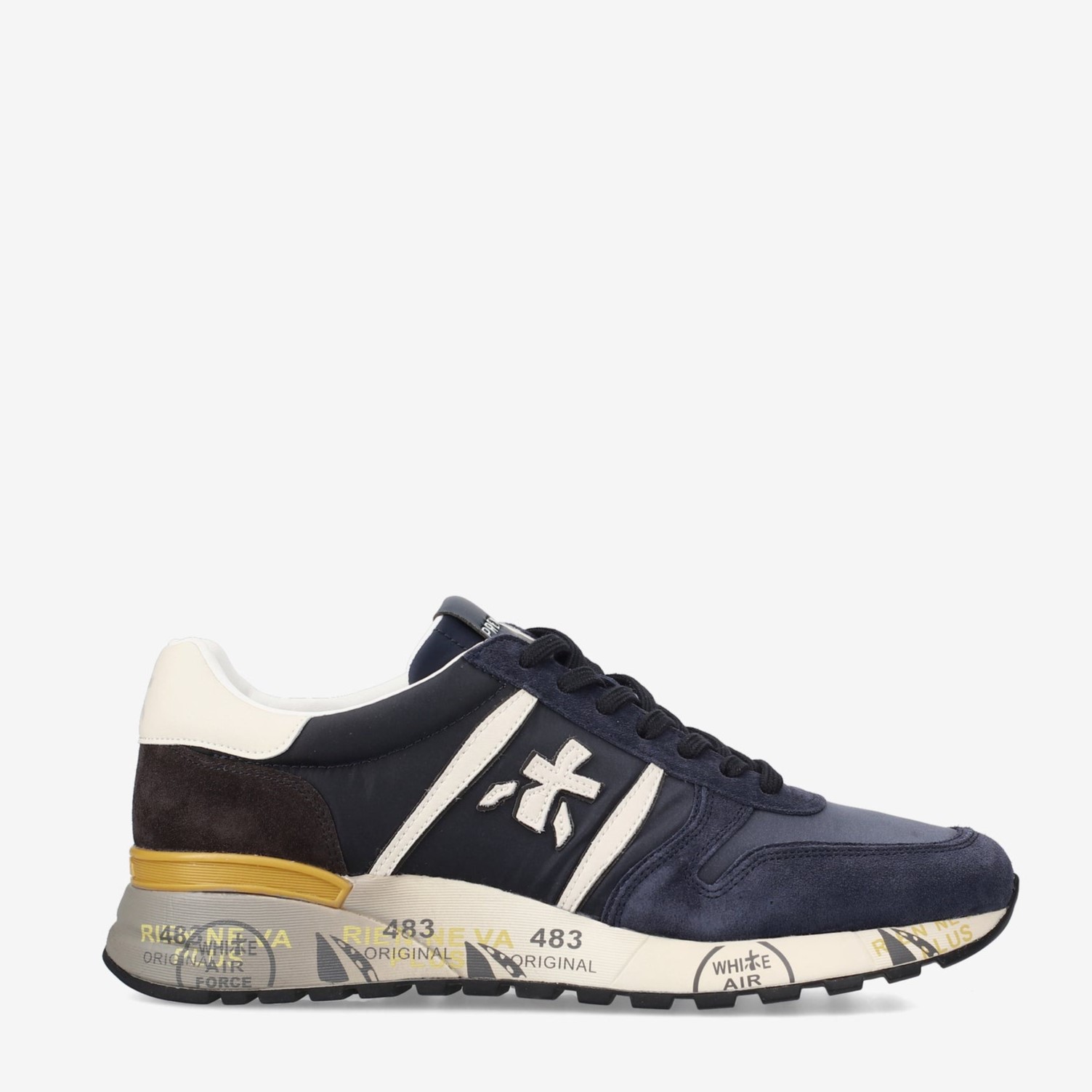 Sneakers Lander in pellame morbido scamosciato e nylon nella tonalità del grigio. Il look è arricchito dall’inconfondibile logo Premiata e dai dettagli colorati sulla suola. Suola ergonomica e super leggera.