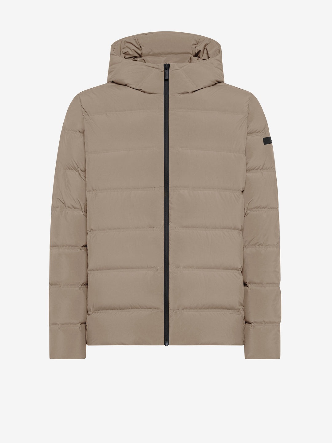 Questa soft jacket con cappuccio imbottito interpreta con stile originale il concetto di versatilità contemporanea attraverso una costruzione ibrida e funzionale. Il davanti presenta la texture priva di impunture dei canali tubici, resistenti a vento e pioggia, che contengono la calda e leggera imbottitura in piuma d’anatra 90/10. Il dorso, le maniche, i polsi e il fondo sono realizzati in esclusivo SURFLEX® elasticizzato, dal look super opaco e antipiega. La silhouette è slanciata dalla zip, affiancata dalle tasche laterali con chiusura invisibile, che completano il design dinamico ed essenziale. All’interno, il taschino con zip invisibile è impreziosito dai dettagli distintivi della doppia nastratura arancio fluo e la tag a cuore “Made with love, designed in Tuscany”. Il filetto arancione sul retro e il logo a microiniezione nero sulla manica sinistra completano con una nota emblematica la creazione, ideale per vivere la città e il tempo libero con attitudine sportiva e sofisticata.