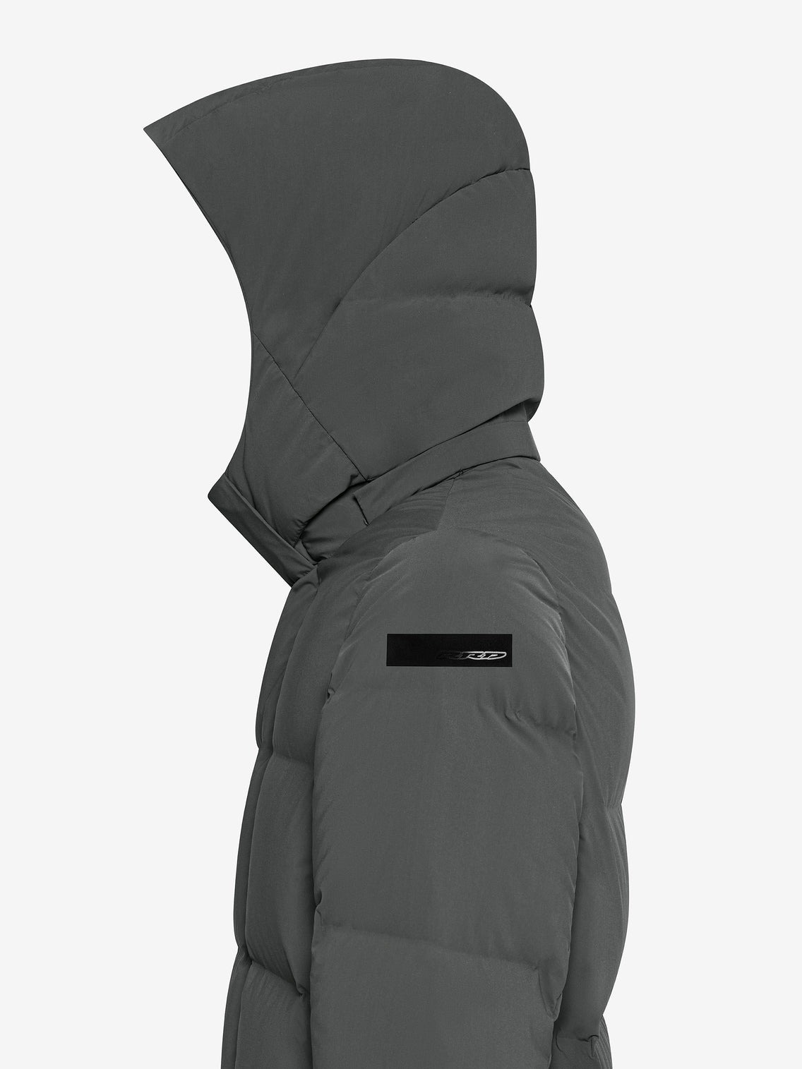Il pattern nitido dei canali tubici caratterizza il design contemporaneo e minimalista di questo piumino caldo e protettivo. Il capospalla offre la protezione del cappuccio staccabile tramite zip nascosta e il calore dell’imbottitura in morbida piuma d’anatra 90/10. La totale assenza di impunture dei canali tubici previene la sua fuoriuscita. Il look super opaco dell’esterno nell’esclusivo tessuto stretch SURFLEX® e la patta abbottonata a pressione, che nasconde la zip a doppio cursore metallico del davanti, enfatizzano la pulizia visuale del design. Le tasche laterali sono pratiche e capienti, chiuse da zip invisibili. L’interno è completato dal taschino a zip invisibile, ravvivato dal doppio filetto arancione fluo, accanto alla tag a cuore “Made with love, designed in Tuscany”. Il logo a microiniezione nero sulla manica sinistra completa questa giacca morbida, confortevole e a prova d’inverno, disponibile nelle tonalità di stagione.