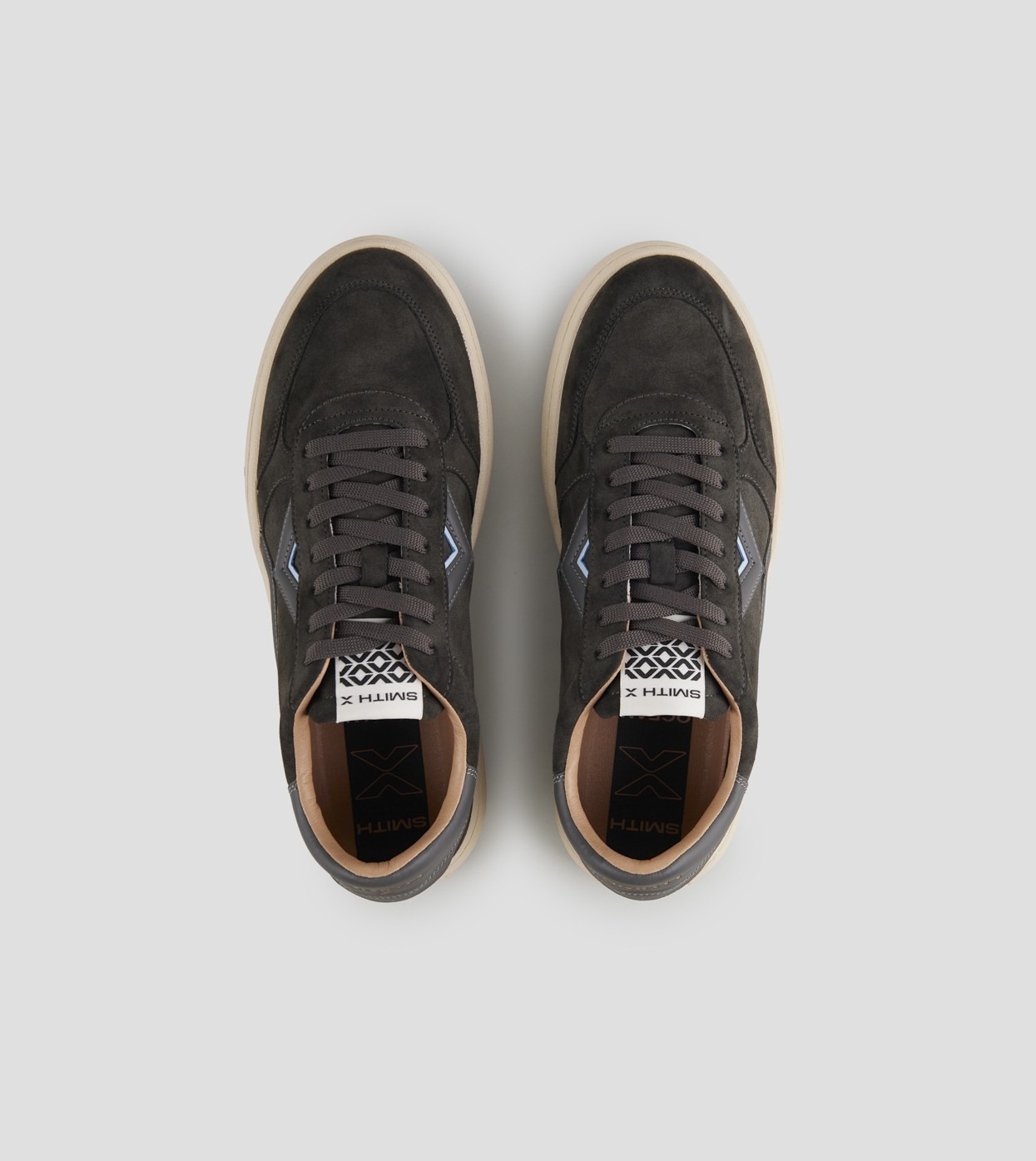 Ispirata al movimento, pensata per la leggerezza. OCEAN è la sneaker che traduce in design lo spirito fluido e dinamico della nuova generazione. La tomaia mescola materiali morbidi e tonalità ricercate, arricchita da dettagli inattesi che catturano lo sguardo, in questa variante in suede grigio scuro con dettagli blu.