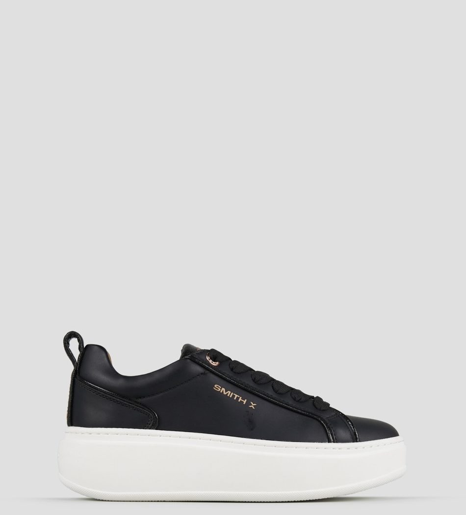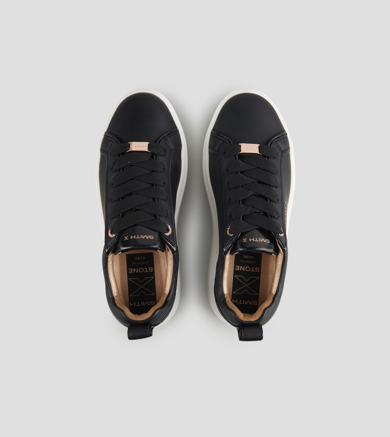 Pulita, lineare, intramontabile. STONE è la sneaker minimal firmata Smith X, che unisce spirito urbano e gusto raffinato in un design unisex pensato per durare nel tempo, in questa variante nera con dettagli in laminato nero.