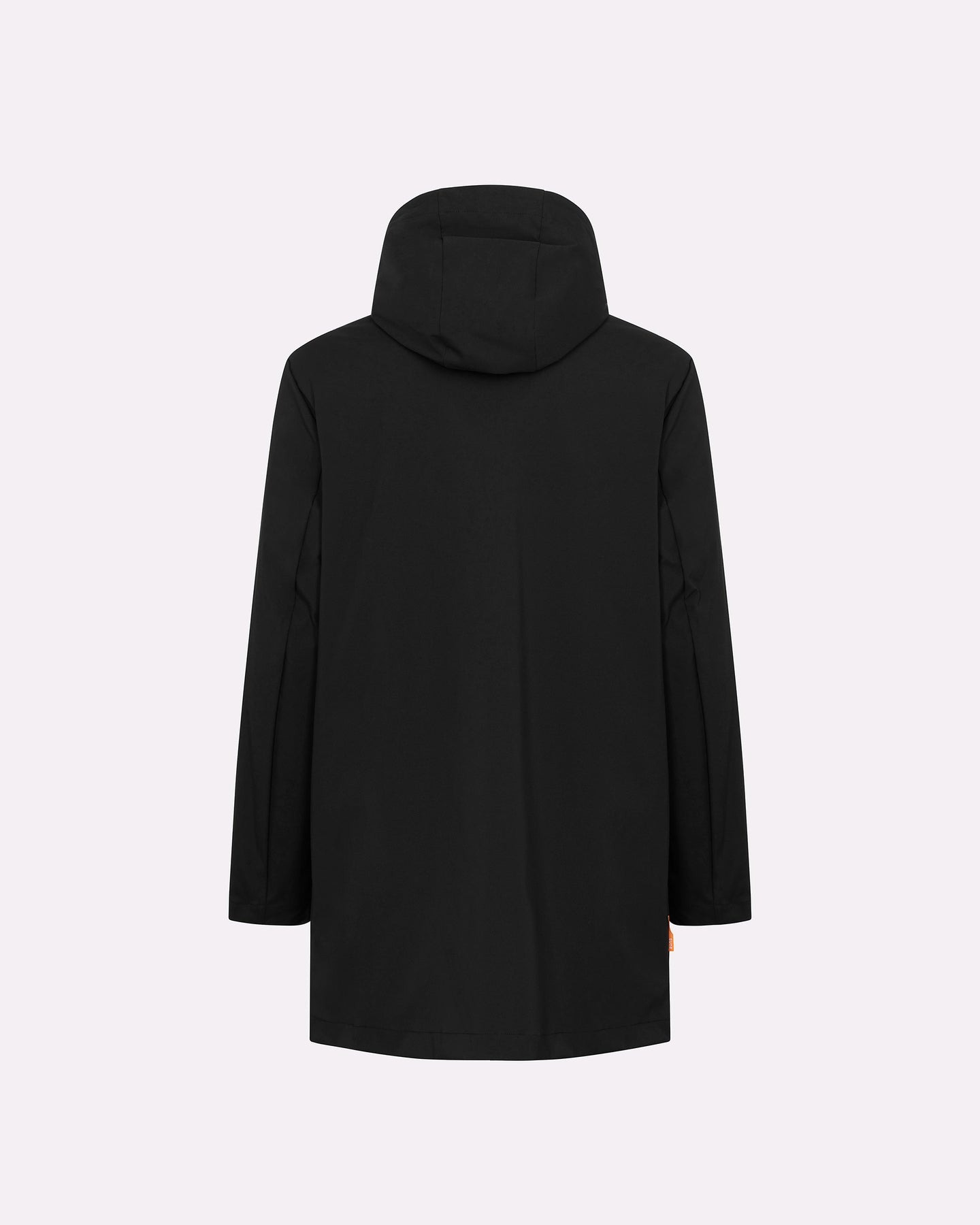 Esterno lungo in tessuto tecnico: look minimal e protezione avanzata.
