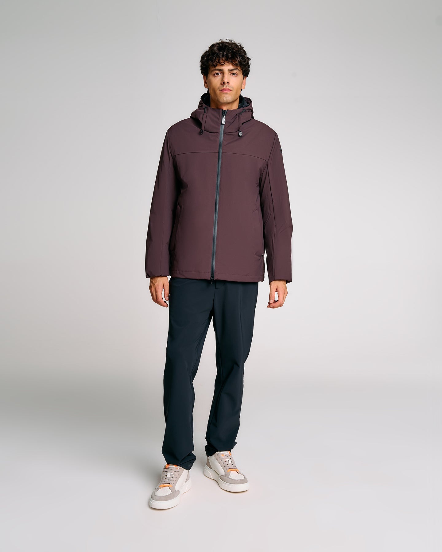 Cappuccio regolabile con stopper: protezione su misura contro vento e pioggia.