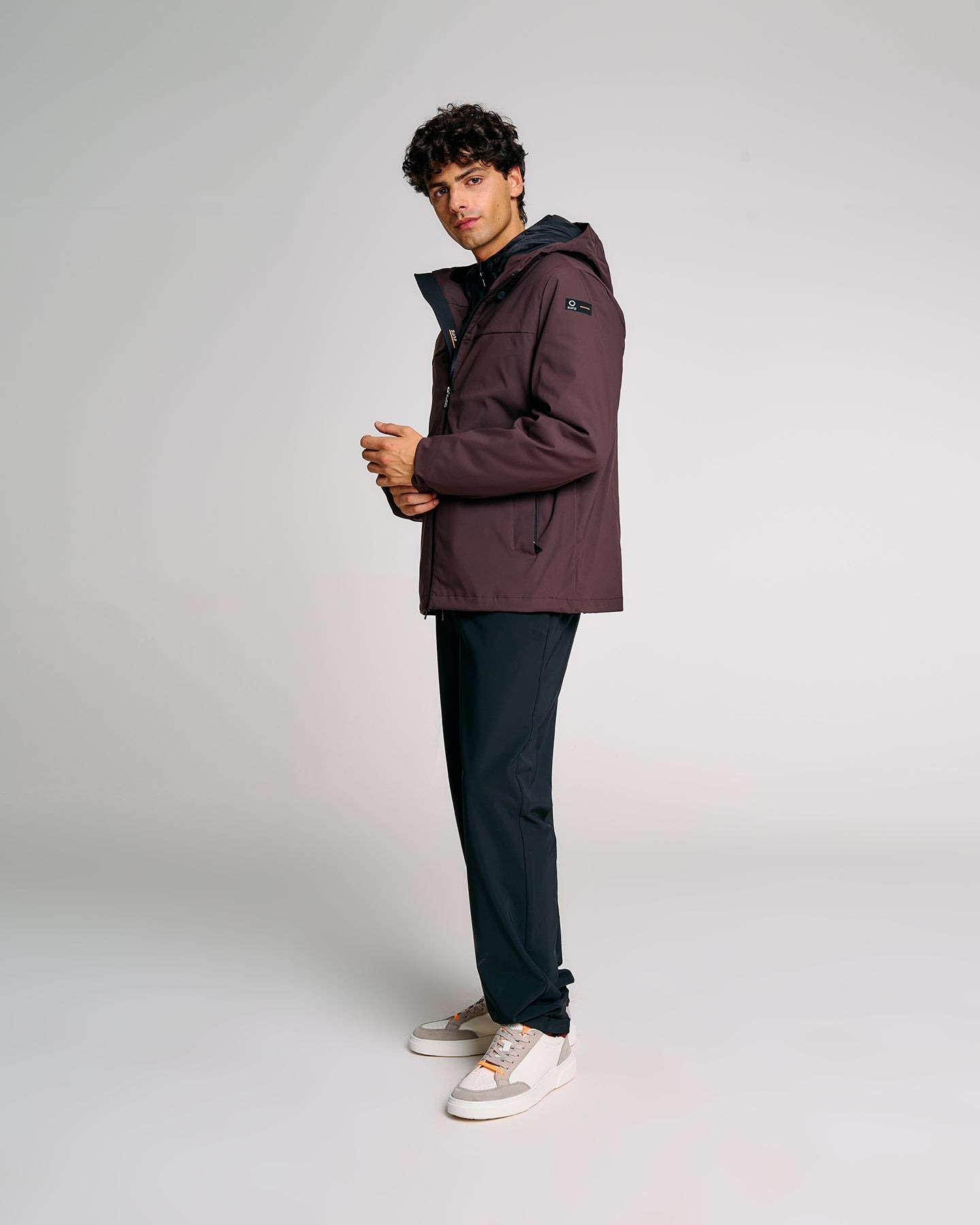 Un giubbotto tecnico da uomo estremamente versatile grazie alla struttura double layer componibile: due giubbini separati, staccabili e indossabili singolarmente o insieme. Il lato esterno, realizzato in tessuto tecnico con finitura termonastrata, è dotato di cappuccio regolabile con stopper personalizzati, tasche con zip e dettagli a contrasto arancione fluo. Il giubbino interno, più leggero, presenta imbottitura Thermolite 120gr, tasche laterali e chiusura zip con doppio cursore. Una soluzione perfetta per affrontare le diverse condizioni climatiche con stile e funzionalità.
