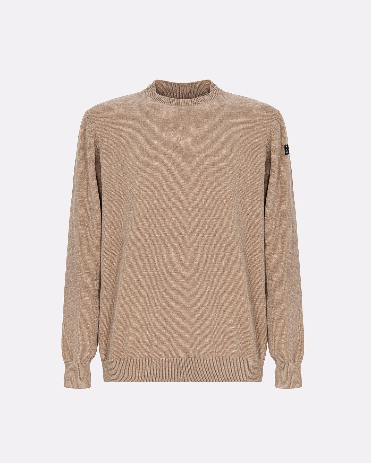 Una maglia da uomo in filato effetto ciniglia, ideale per affrontare i mesi più freddi con stile. Il tessuto a lavorazione fine garantisce una piacevole sensazione di morbidezza al tatto, mentre la struttura lineare e il taglio essenziale si adattano perfettamente a diversi look, dal casual al più raffinato. Il collo sottile rialzato aggiunge un tocco contemporaneo e funzionale, completato da polsini e fondo a costine per una migliore vestibilità. Un patch Suns è applicato sulla manica sinistra, segno distintivo del brand.