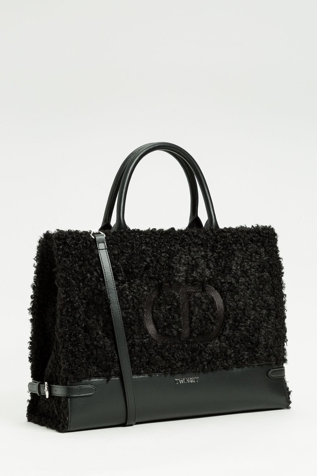 Twinset grande borsa a mano con chiusura. Realizzato in tessuto ed ecopelle.