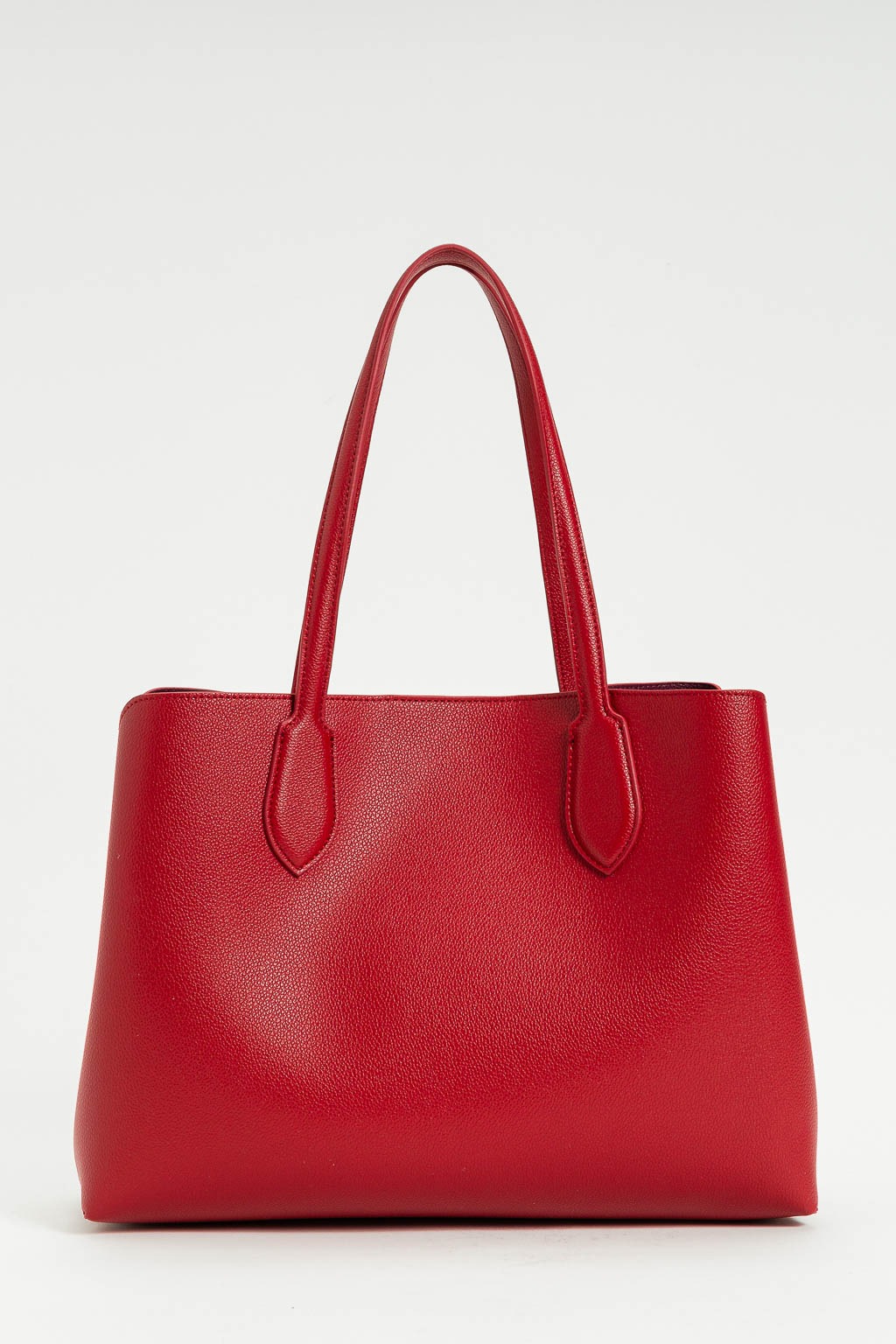 Borsa shopper effetto pelle di vitello con grana naturale, doppiata con effetto bicolore. Ha doppio manico a spalla, vani laterali interni chiusi da magnete, ampio vano centrale chiuso da zip, logo Oval T in metallo, sfoderata. Perfetta per uso quotidiano e da ufficio.