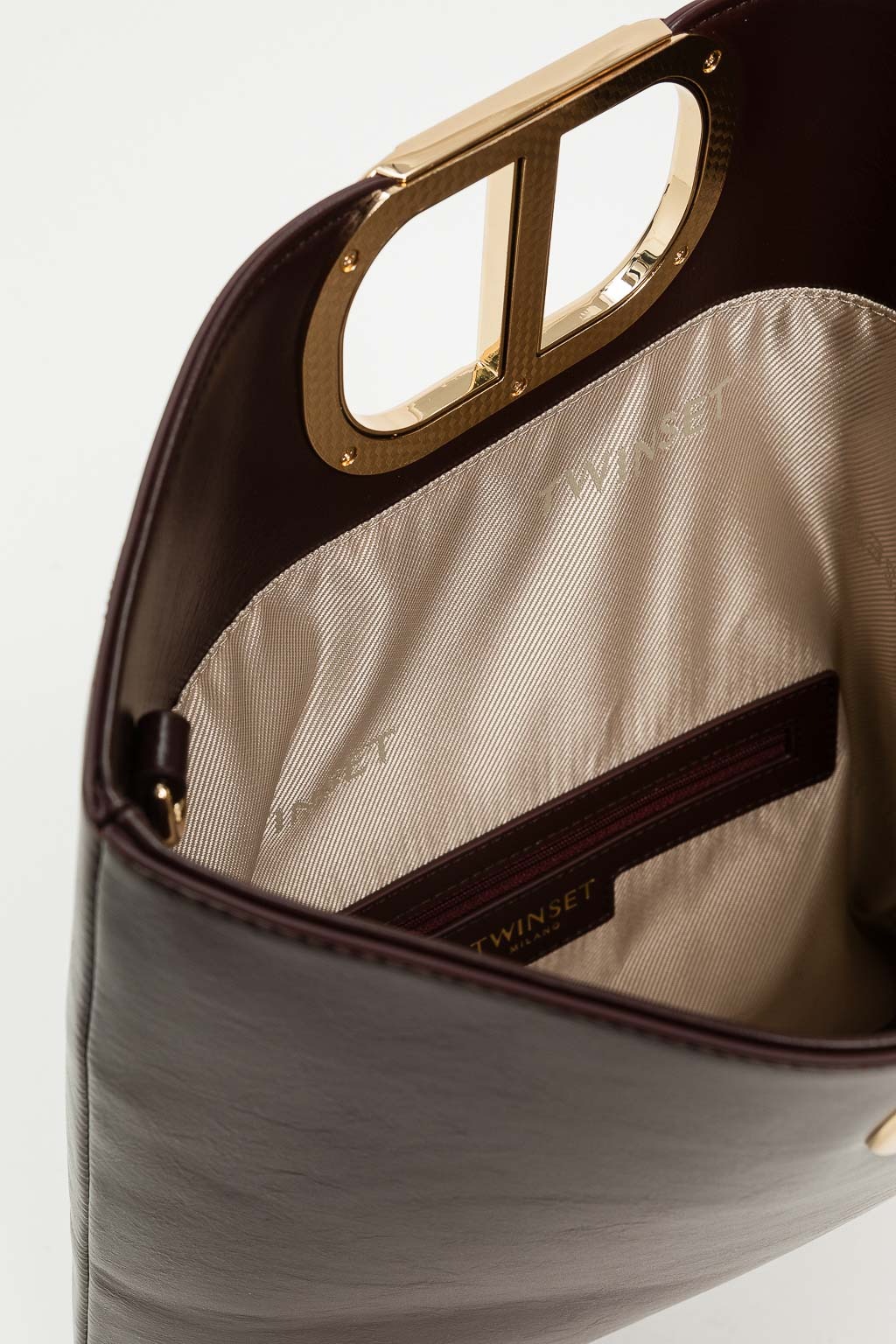 Borsa shopper ‘Lila’ effetto pelle di vitello semilucido con aspetto leggermente mosso e naturale. Ha chiusura con magnete, tracolla in catena rimovibile, manico Oval T in metallo color oro. All’interno del logo sono presenti due anelli che si possono basculare verso l’interno ed utilizzare come ulteriori manici. Puoi portare il modello anche piegato come una maxi clutch.