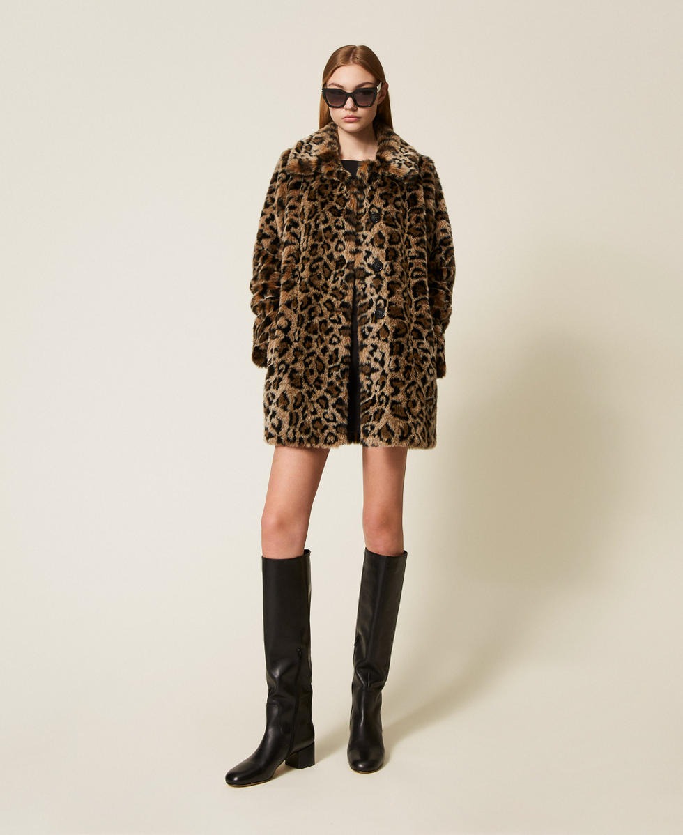 TWINSET Cappotto in faux fur animalier 252TP2110 Jacquard Animalier Nero Coffee