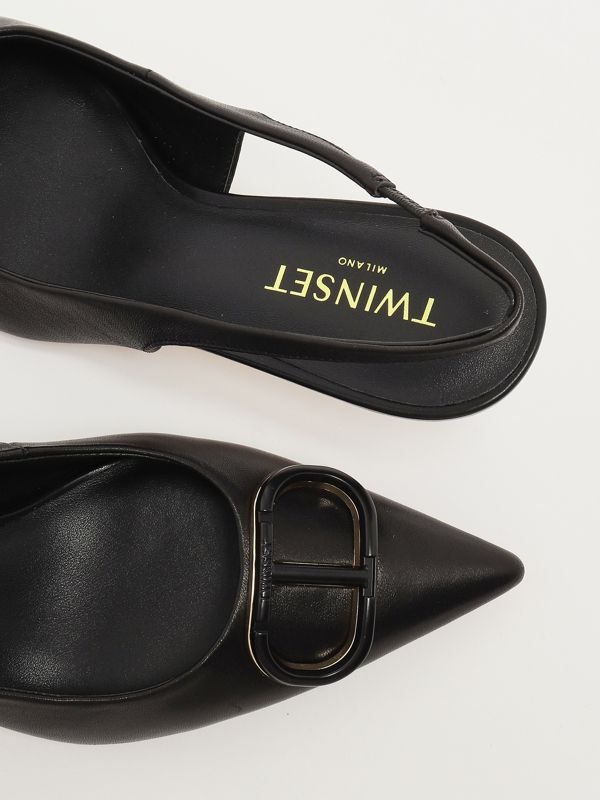 Décolleté sling back in pelle con Oval T smaltato in tono, punta sfilata, tacco basso a stiletto e fondo in tunit.