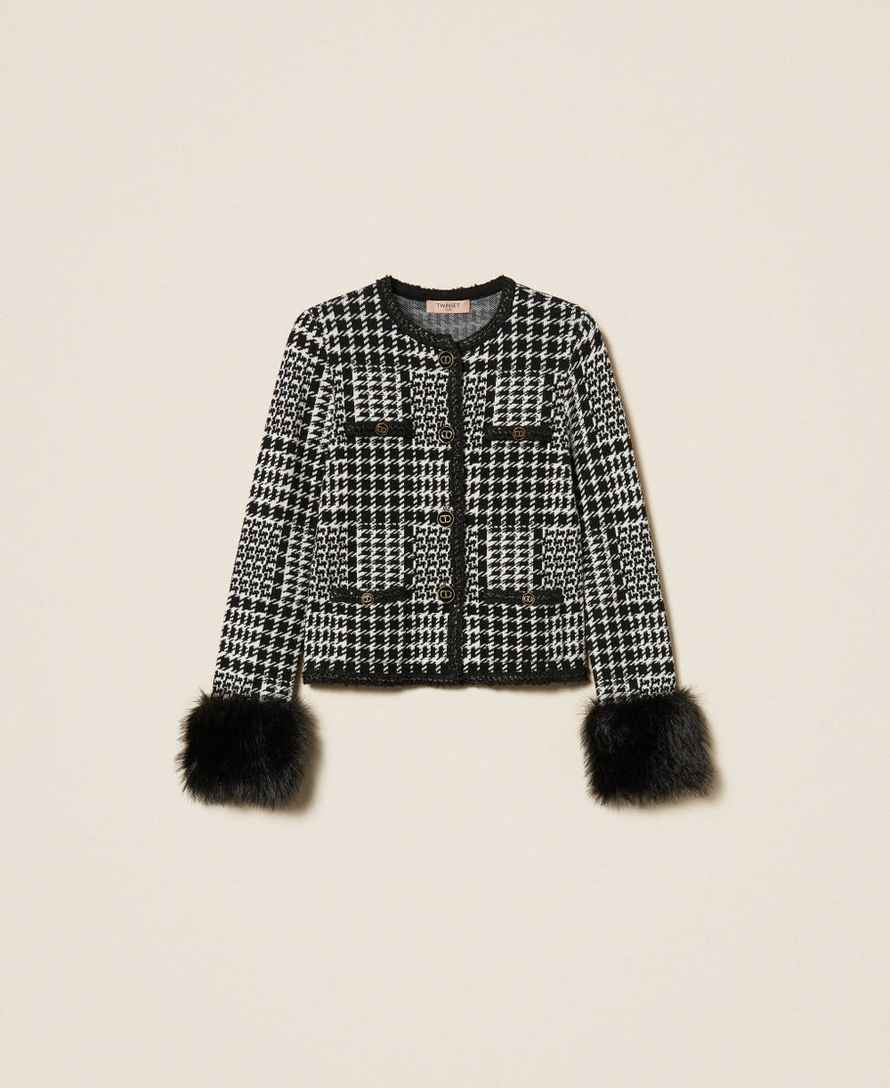 TWINSET Giacca maglia Pied de poul 252TT3040 Neve Nero