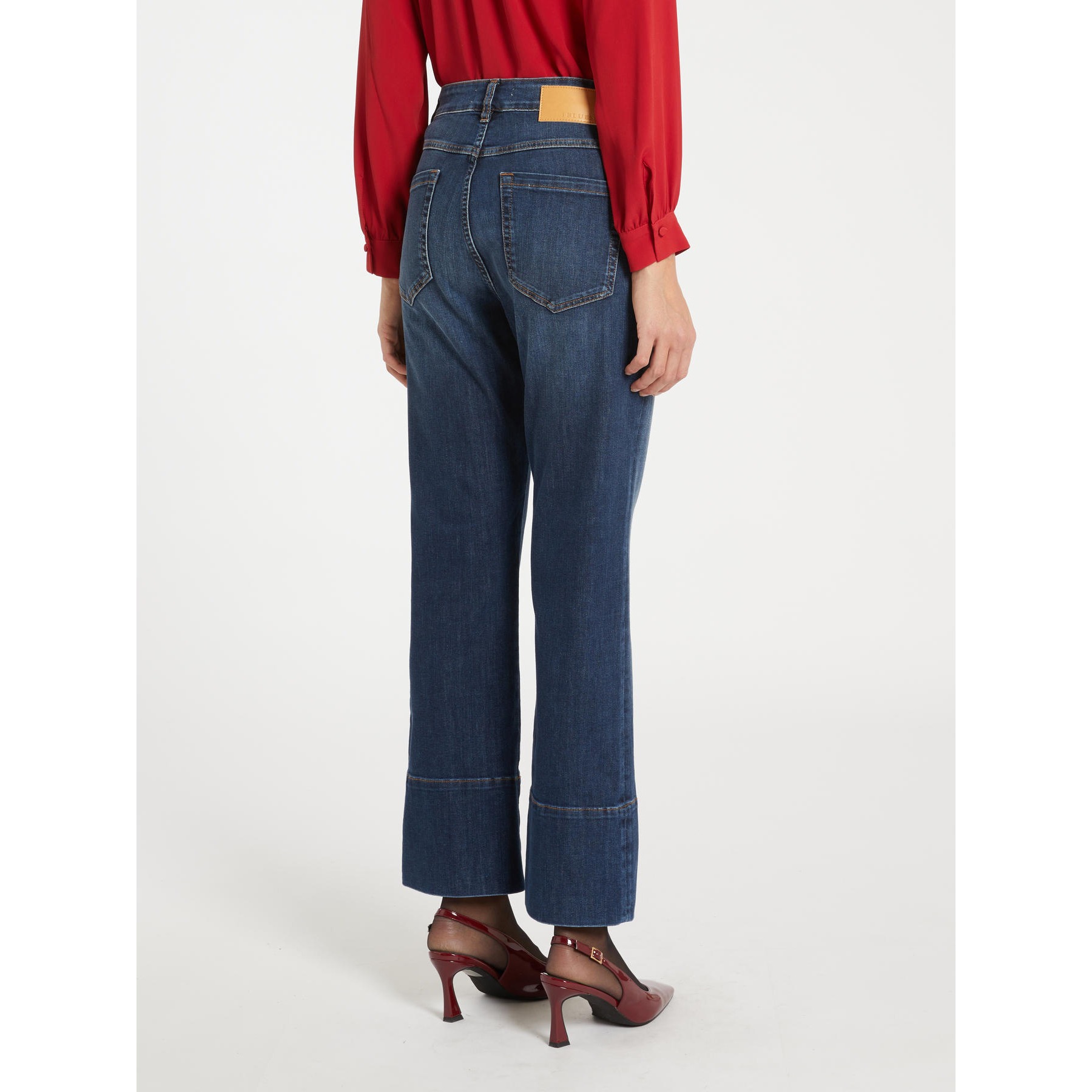 Jeans in cotone stretch con strass termoadesivi all over davanti. Ha passanti in vita, chiusura con zip e bottone a chiodo logato, cinque tasche, linea dritta. Lavaggio con base nero e schiariture stone wash.