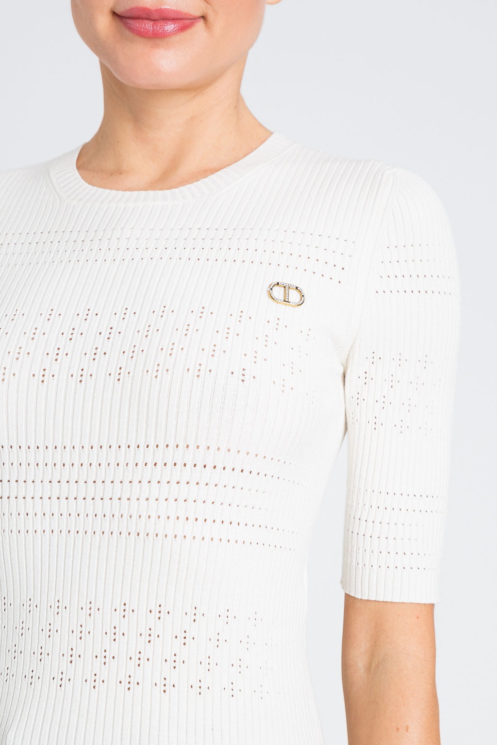 Twinset T-shirt realizzata in maglia a tinta unita. Il materiale con elevata elasticità garantisce una libertà di movimento completa.