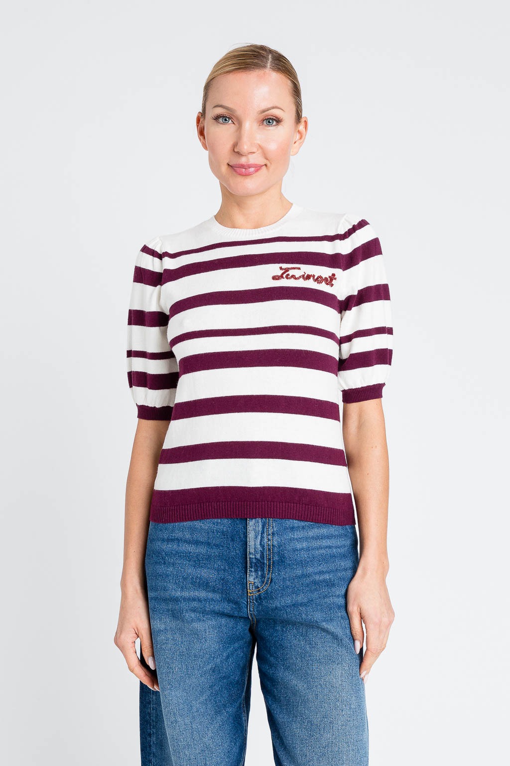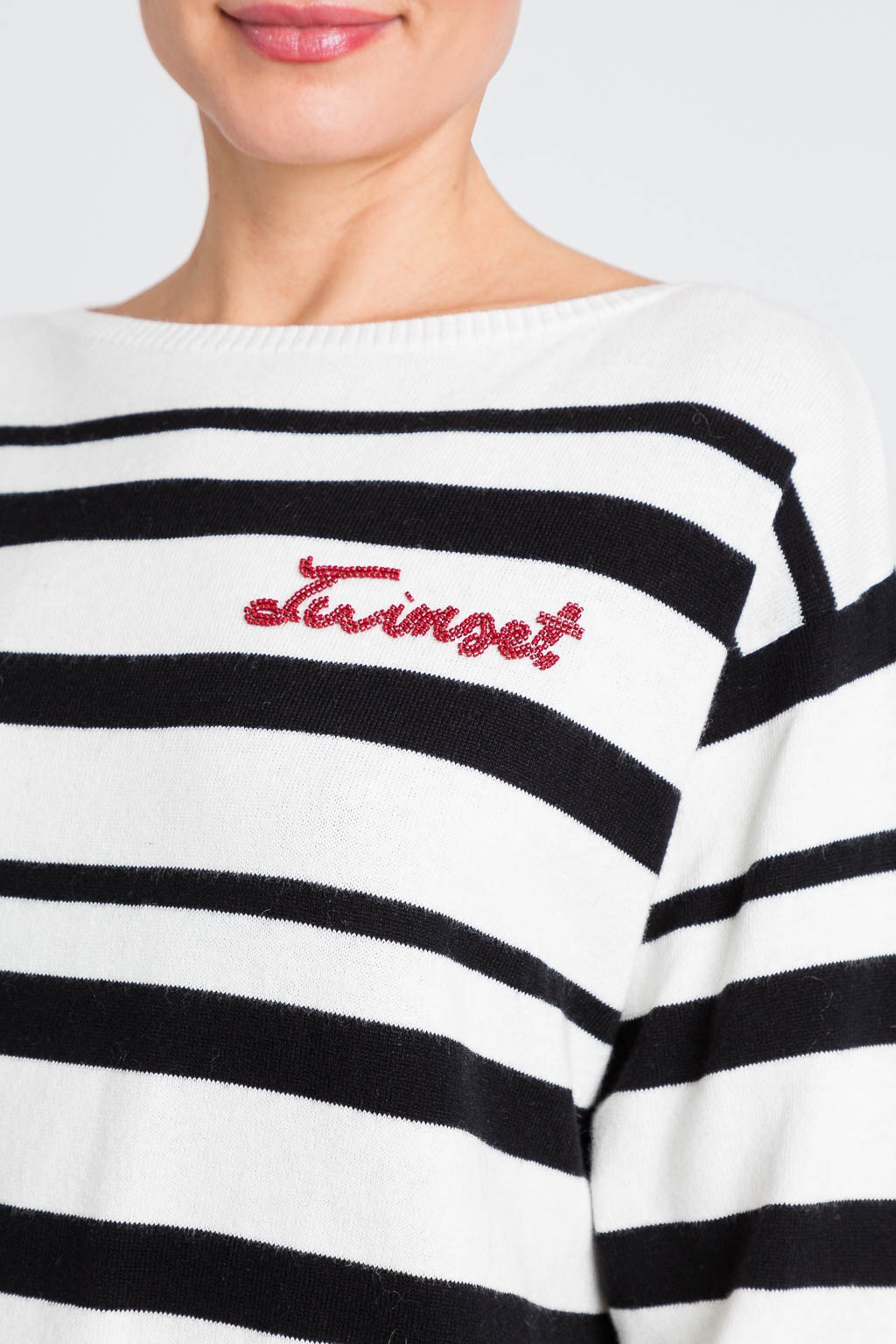 Twinset maglione realizzato in maglia fine. Il modello realizzato in un tessuto estremamente confortevole ad alta percentuale di cotone.