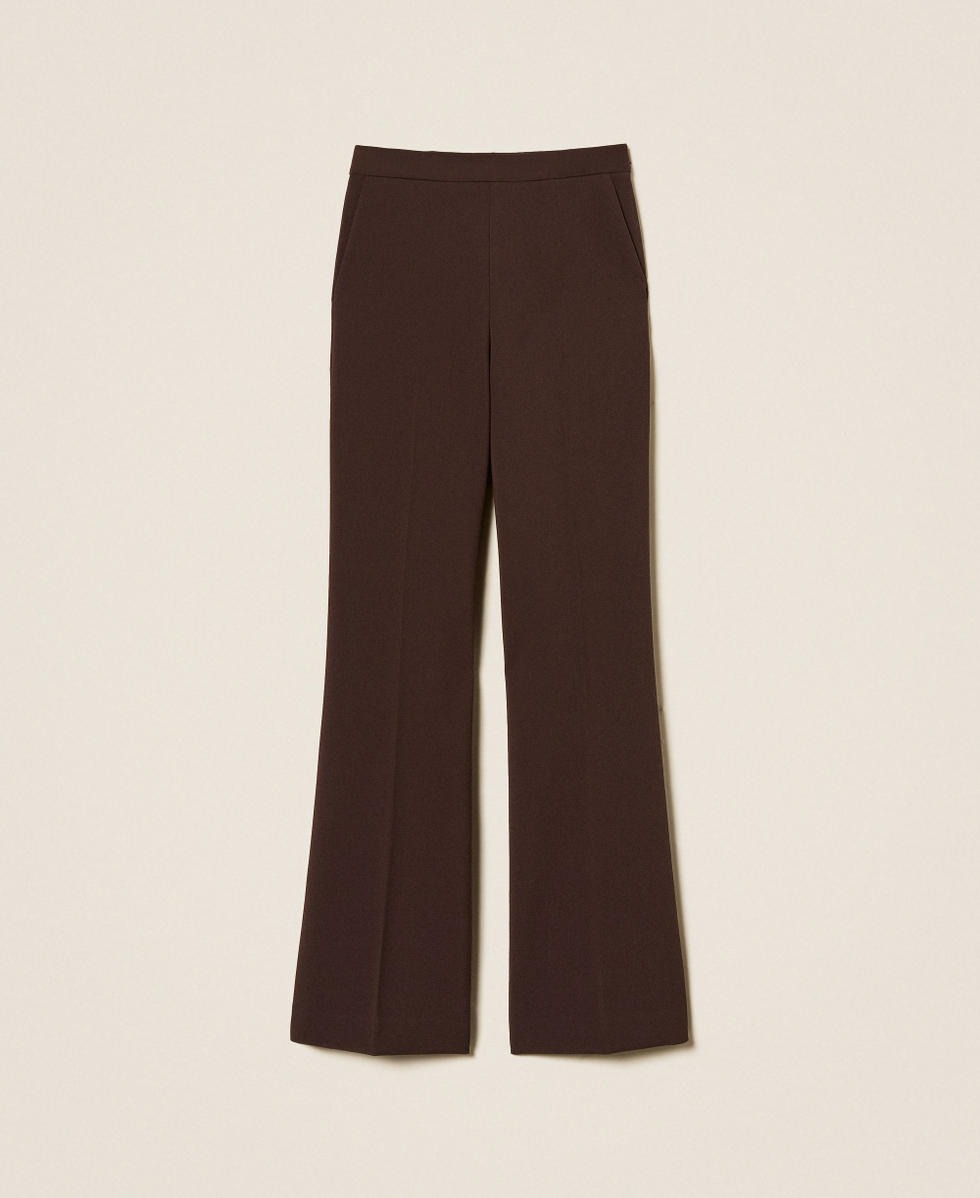 Pantaloni in crêpe double di misto viscosa con zip invisibile al fianco, tasche alla francese, piega stirata, linea dritta.