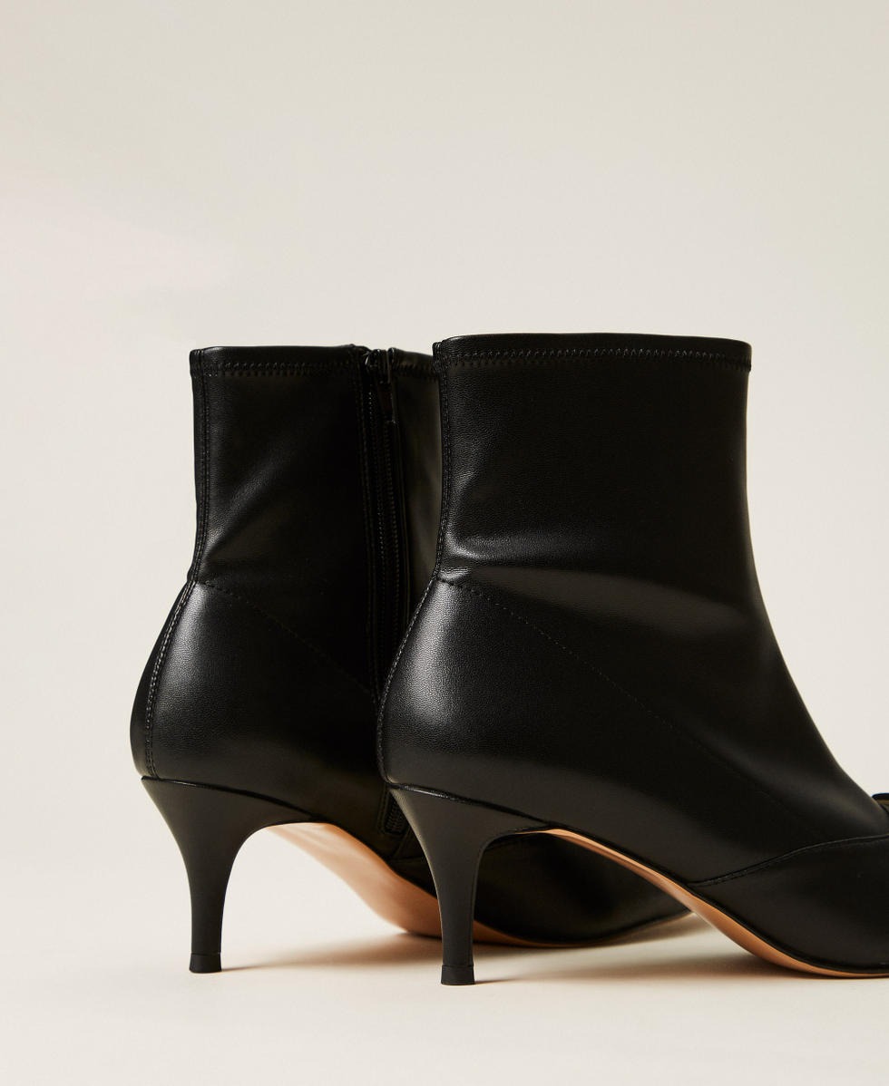 Stivaletti alla caviglia effetto pelle con inserto elasticizzato, Oval T smaltato in tinta, punta sfilata, chiusura con zip interna e fondo in tunit.
